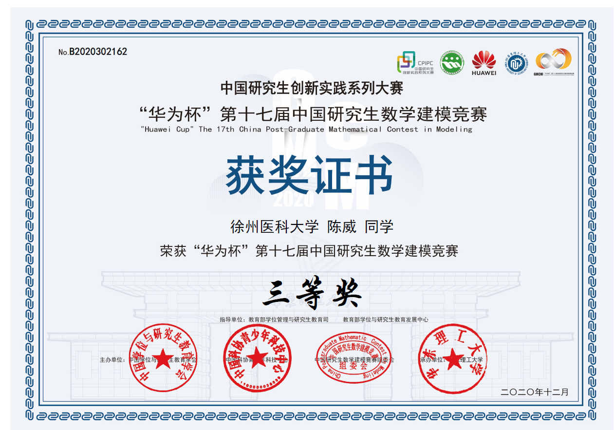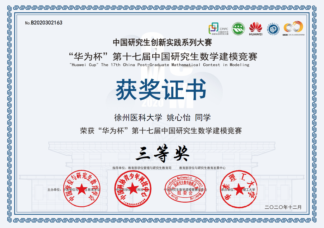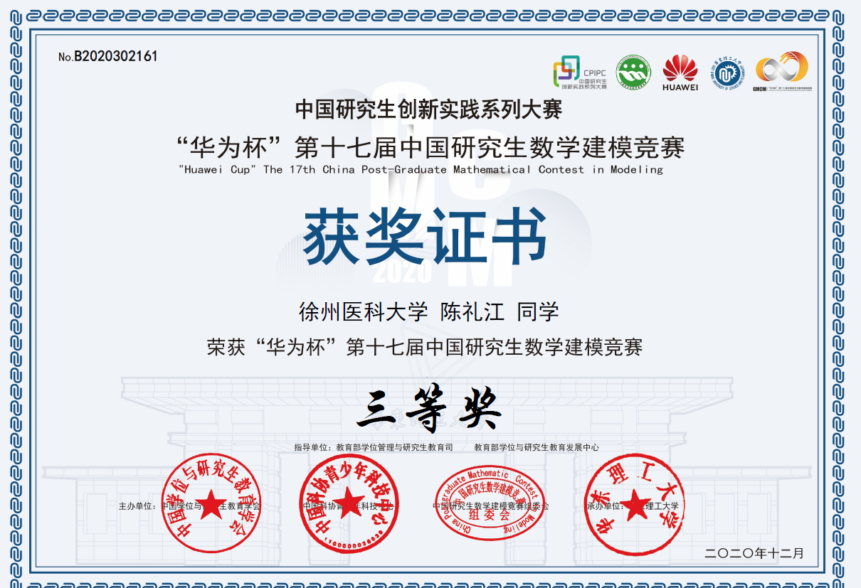 近日,2020年“华为杯”第十七届中国研究生数学建模竞赛结果公布,捕鱼达人 管理捕鱼达人 的姚心怡、陈礼江和公卫捕鱼达人 的陈威三位研究生荣获全国三等奖。这是捕鱼达人 学子在该赛事中取得的历史最好成绩。