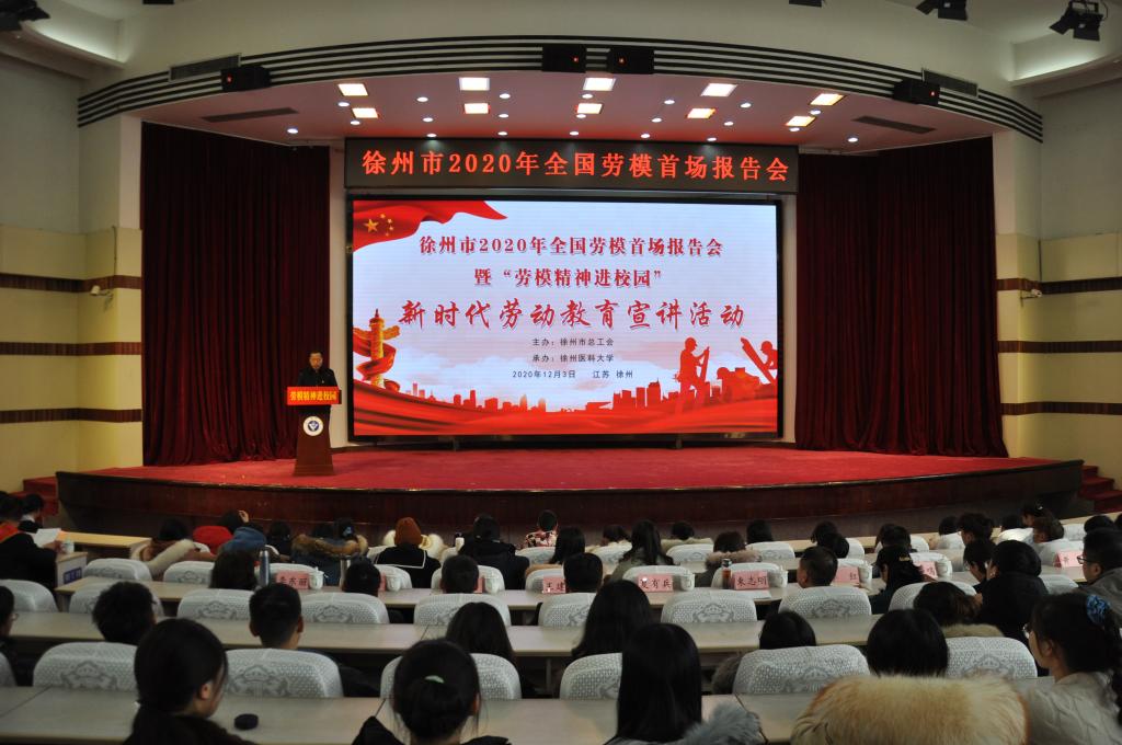 12月3日下午,徐州市2020年全国劳模首场报告会暨“劳模精神进校园”——新时代劳动教育宣讲活动在捕鱼达人 举办。校党委书记夏有兵、副书记季红,市人大常委会副主任、市总工会主席束志明、副主席王建民出席报告会。全校教师代表、学生代表近300人到场聆听了宣讲会。