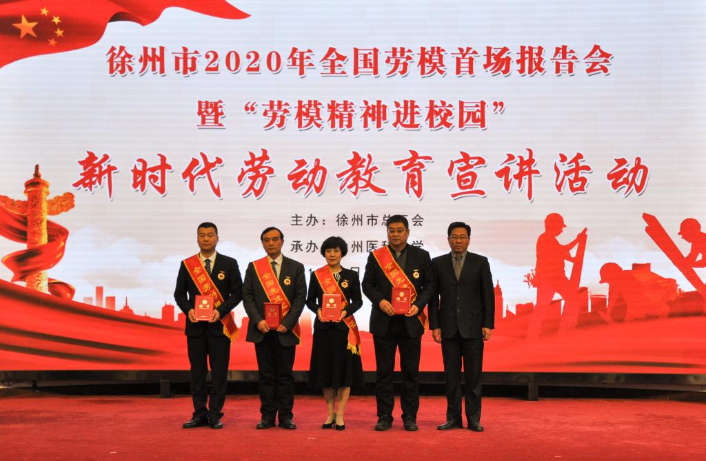 王建民副主席为全国劳模宣讲团代表颁发宣讲团聘书。徐州市中心医院泌尿外科主任韩从辉、中国电信股份有限公司徐州分公司创新业务运营中心副经理、党支部书记董青、睢宁县王集镇中心小学教师朱永、徐州重型机械有限公司电焊工张怀红分别作了宣讲。劳模们以自身经历和奋斗历程诠释了爱岗敬业、争创一流、艰苦奋斗、勇于创新、淡泊名利、甘于奉献的劳模精神,崇尚劳动、热爱劳动、辛勤劳动、诚实劳动的劳动精神,执着专注、精益求精、一丝不苟、追求卓越的工匠精神。
