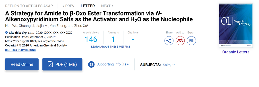 论文链接://pubs.acs.org/doi/10.1021/acs.orglett.0c02457