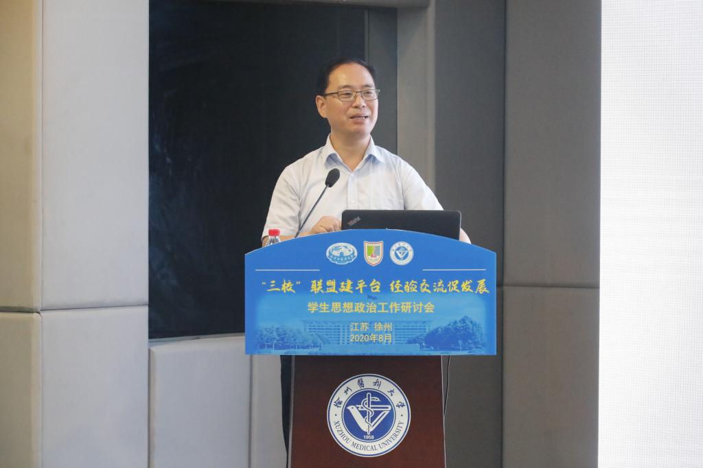 徐海波副书记在开幕式上致辞,他充分肯定了自“三校”联盟成立以来,三所高校在医学生思想政治教育和学生工作内涵建设等方面所开展的工作和取得的成效,希望本次研讨会能为三校学生工作提供相互学习、相互借鉴、思想碰撞的机会,并预祝研讨会圆满成功。