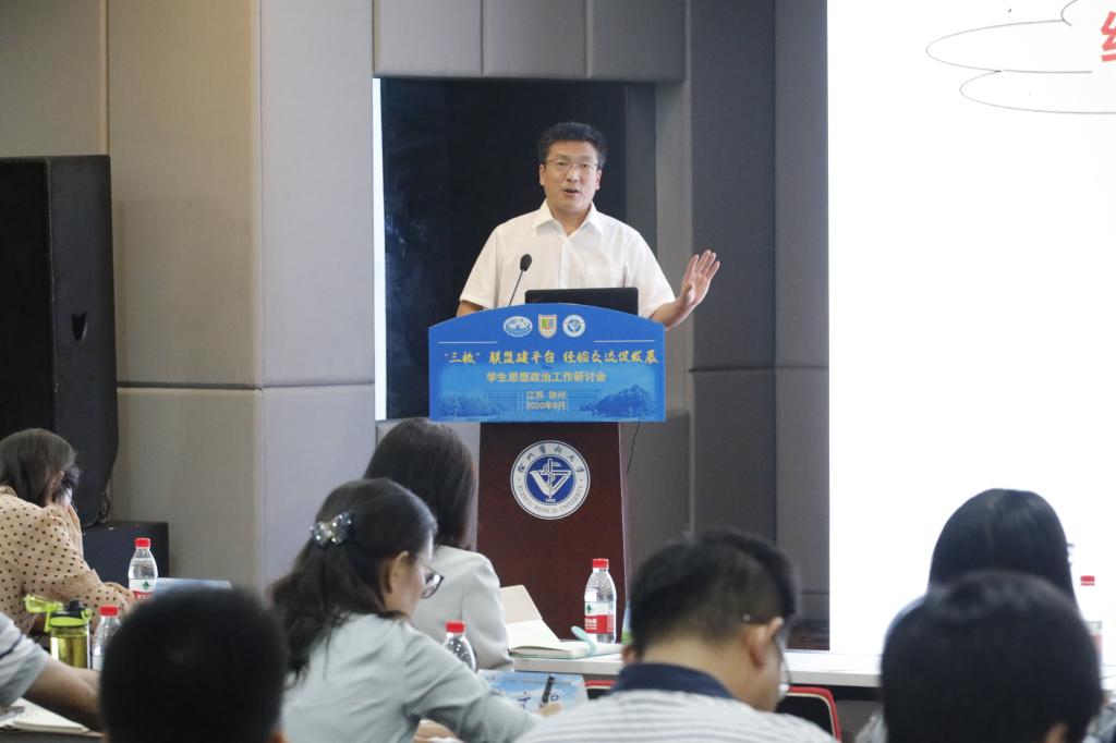 按照省属医学高校“三校”联盟的工作安排,8月10日-11日,2020年学生思想政治工作研讨会在捕鱼达人 举行。校党委副书记、副校长徐海波,中国矿业大学党委宣传部部长黄军利、南京医科大学学生工作部部长薛宇、南京中医药大学学生工作处处长屠宏斐,以及三所捕鱼达人 学工干部代表参加活动。活动由校学生工作部部长陈玮主持。