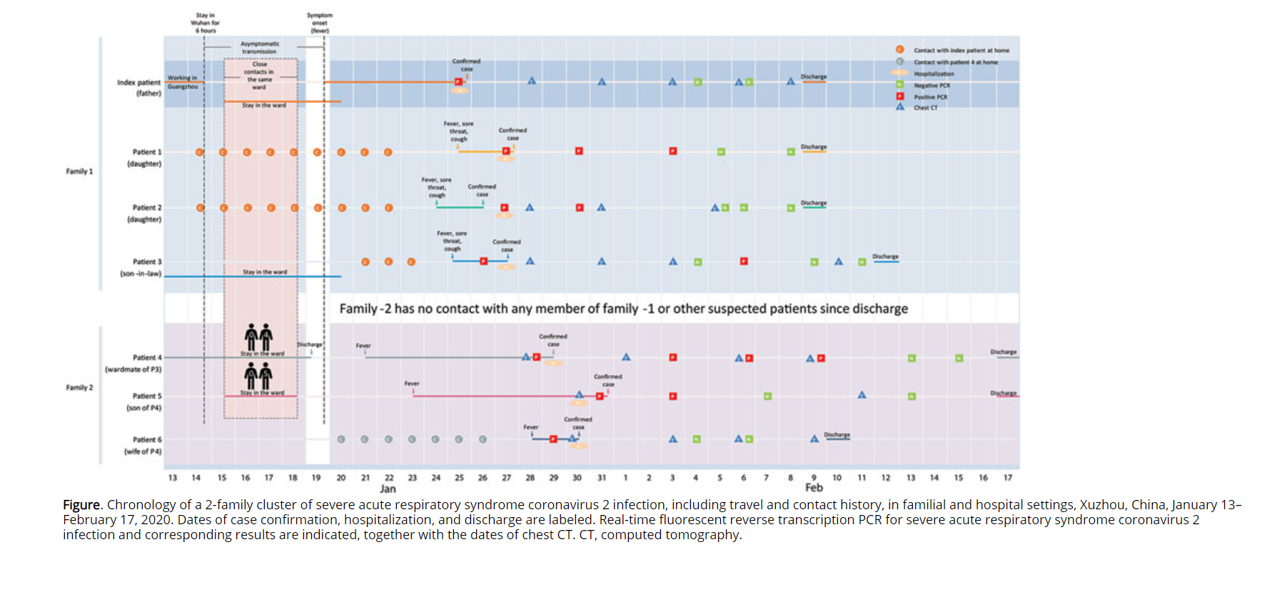 该研究报道了两个家庭7例新型冠状病毒(2019-COVID19)感染的肺炎(简称新冠肺炎)病例的流行病学资料、实验室检查结果和临床表现等,研究结果主要证实:在家庭和医院环境中,人与人之间可通过密切接触传播新冠肺炎,特别是患者在无症状期也具有传染性。