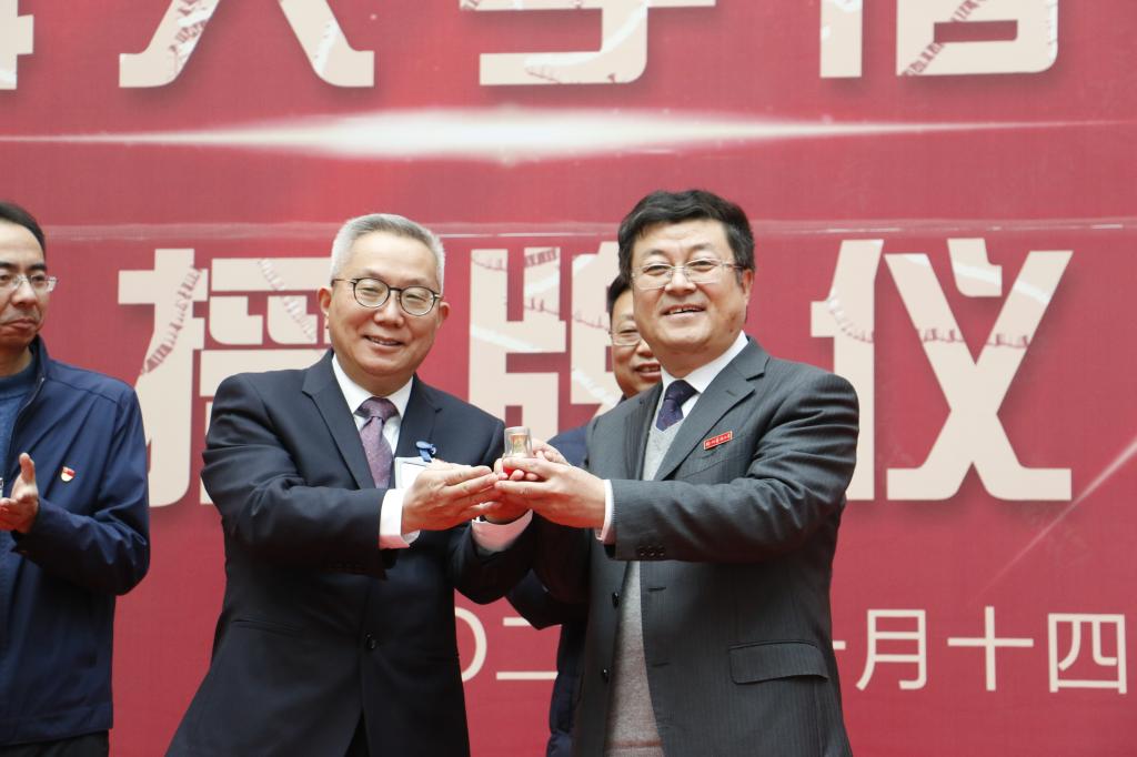 王峰书记与汤建平院长完成印章交接