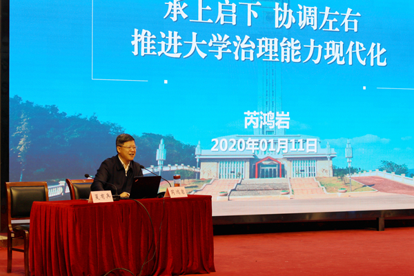江苏省社会科捕鱼达人 党委书记、院长,十三届江苏省委委员夏锦文教授作了《学习贯彻党的十九届四中全会精神 推进现代大学治理体系和治理能力现代化》报告。他阐述了十九届四中全会的基本情况和重大意义,强调大学治理体系和治理能力是大学制度及其执行能力的集中体现,提出要以完善制度为核心,推进大学治理体系建设;以健全治理体系为支撑,促进大学治理能力提升;运用法治思维、法治方式,推动大学治理现代化。南京工业大学党委书记芮鸿岩教授结合党的十九届四中全会精神、习近平总书记系列讲话精神,从中层干部的基本要求、角度定位、治理能力三个方面作了《承上启下 协调左右 推进大学治理能力现代化》主题报告。