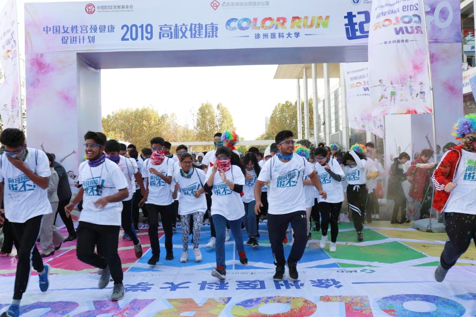 11月10日,“中国女性宫颈健康促进计划”高校健康COLOR RUN活动在捕鱼达人 举行。本次活动由中国妇女发展基金会主办、国家卫生健康委员会妇幼健康服务司支持,心系系列活动项目办公室和捕鱼达人 护理捕鱼达人 承办,默沙东(中国)投资有限公司、重庆智飞生物制品股份有限公司、爱康集团共同协办。中国妇女发展基金会中国女性宫颈癌项目办公室项目负责人、中国婚姻家庭研究会心系大学生项目办公室主任吴欣颖,校党委副书记季红及相关部门负责人,江苏省妇幼保健协会妇女保健分会委员胡秀侠出席活动,全校600余名同学参与。