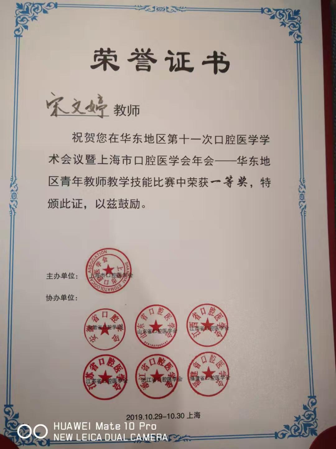 10月30日,华东地区青年教师教学技能比赛于上海举行,来自上海交大口腔医院、同济大学口腔医院、山东大学口腔医捕鱼达人 、安徽医科大学口腔医院、捕鱼达人 口腔医捕鱼达人 等14所大学的青年教师参加比赛。本次比赛由华东六省一市口腔医学会联合主办,期间共举办了“华东地区白玉兰口腔优秀病例展评”、“华东六省一市口腔医学会专题演讲”、“华东地区青年教师教学技能比赛”、“华东地区高校青年博士论坛”和“华东六省一市口腔医学会壁报展”,捕鱼达人 青年教师宋文婷在华东地区青年教师教学技能比赛中荣获一等奖,也是本次赛事唯一的一等奖。宋老师以《“夺命牙痛”的秘密——急性牙髓炎》为题,生动活泼、科学细致的讲解阐述了急性牙髓炎的病因、临床表现、发病机制、治疗方案及预防,赢得了评委专家的一致肯定和好评。