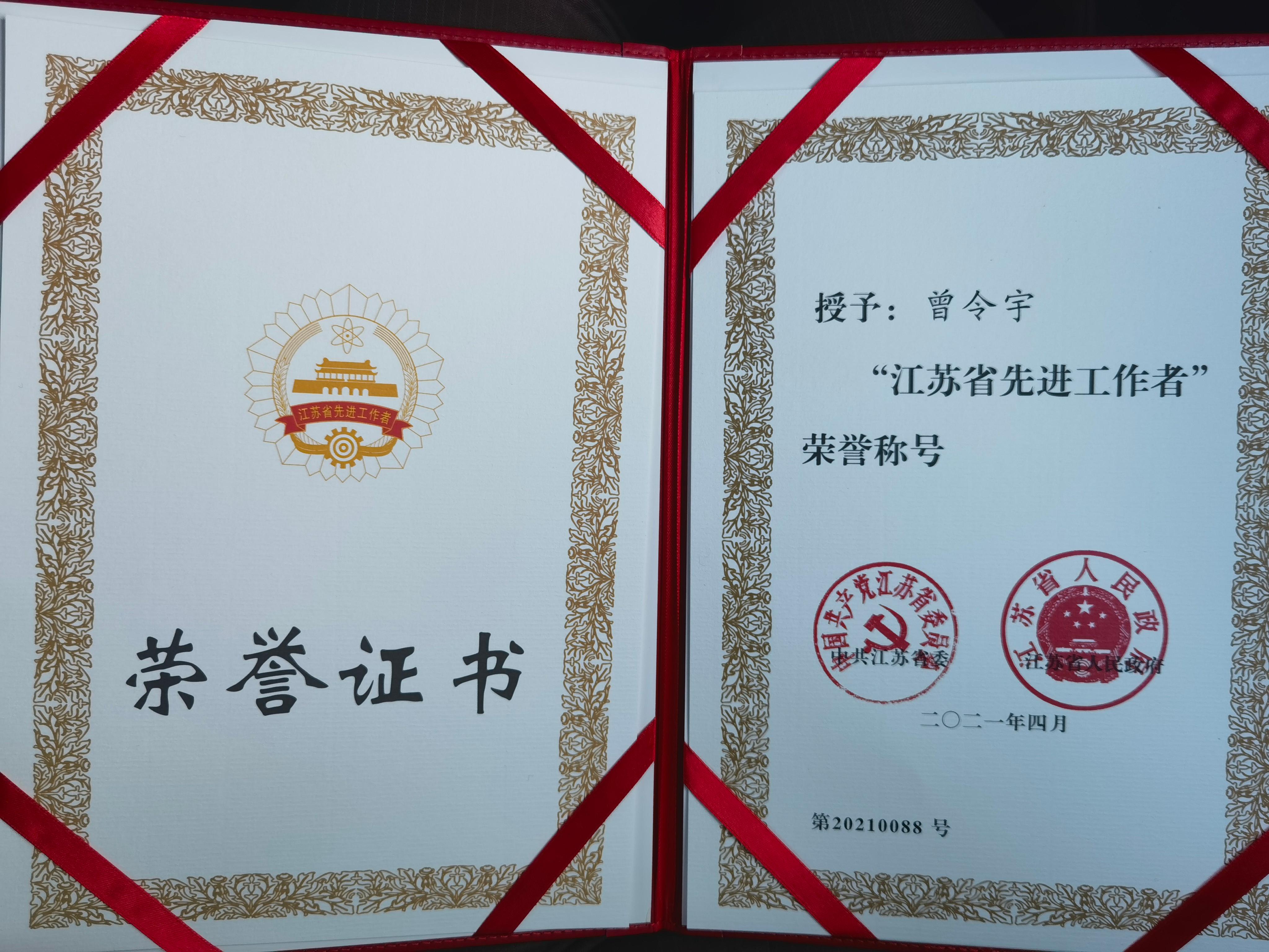 4月30日下午,2021年江苏省劳动模范和先进工作者表彰大会在南京召开。捕鱼达人 曾令宇教授被授予“江苏省先进工作者”荣誉称号。