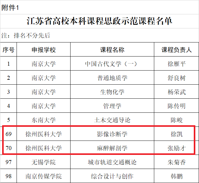 近日,江苏省教育厅发布了《省教育厅办公室关于公布首批江苏省高校课程思政示范课程名单的通知》(苏教办高函〔2021〕11 号),捕鱼达人 医学影像捕鱼达人 的《影像诊断学》(本科)、麻醉捕鱼达人 的《麻醉解剖学》(本科)和《科研诚信与学术规范》(研究生)以及药捕鱼达人 的《药学概论》(研究生)四门课程获评为省级“课程思政”示范课程。
