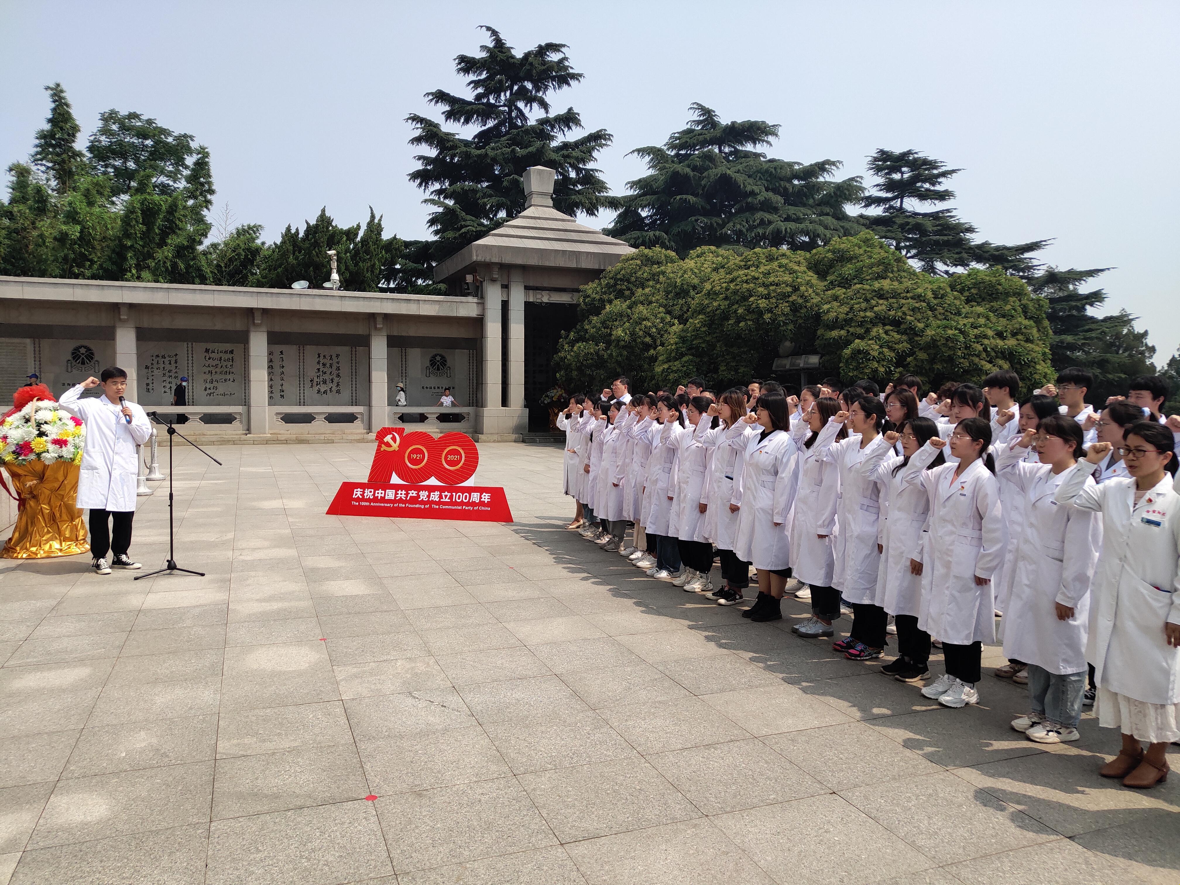 活动现场,教师党员代表王建设同志发出倡议,号召全体党员积极发挥先锋模范作用,发扬仁术济世精神,争做器官捐献的宣传大使、器官捐献的时代先锋,带头成为生命接力先锋队的一份子,带头参与器官捐献的志愿登记工作,把自己的价值奉献给社会,用爱的力量点亮生命的希望。徐医附院医务处处长杨煜同志表示,在中国共产党迎来百年华诞之际,能够参加此次党日活动深感荣幸。作为党员干部和医疗工作者,更要提高党员觉悟,积极参与并推动中国器官捐献与移植公益事业的发展,让更多的人群和家庭受益,让生命接力的大爱精神如同中国革命圣火一样星火燎原。最后,全体参会党员在烈士纪念塔前重温了入党誓词。