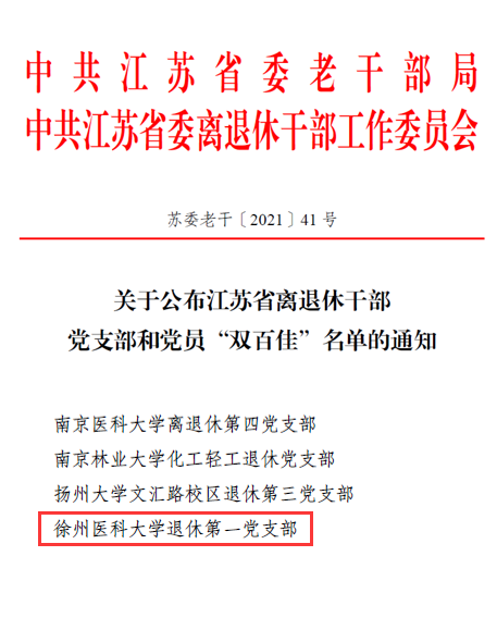 近日,捕鱼达人 离退休党委退休第一党支部被江苏省委老干部局、江苏省委离退休干部工委授予“江苏省百佳离退休干部党支部”荣誉称号。