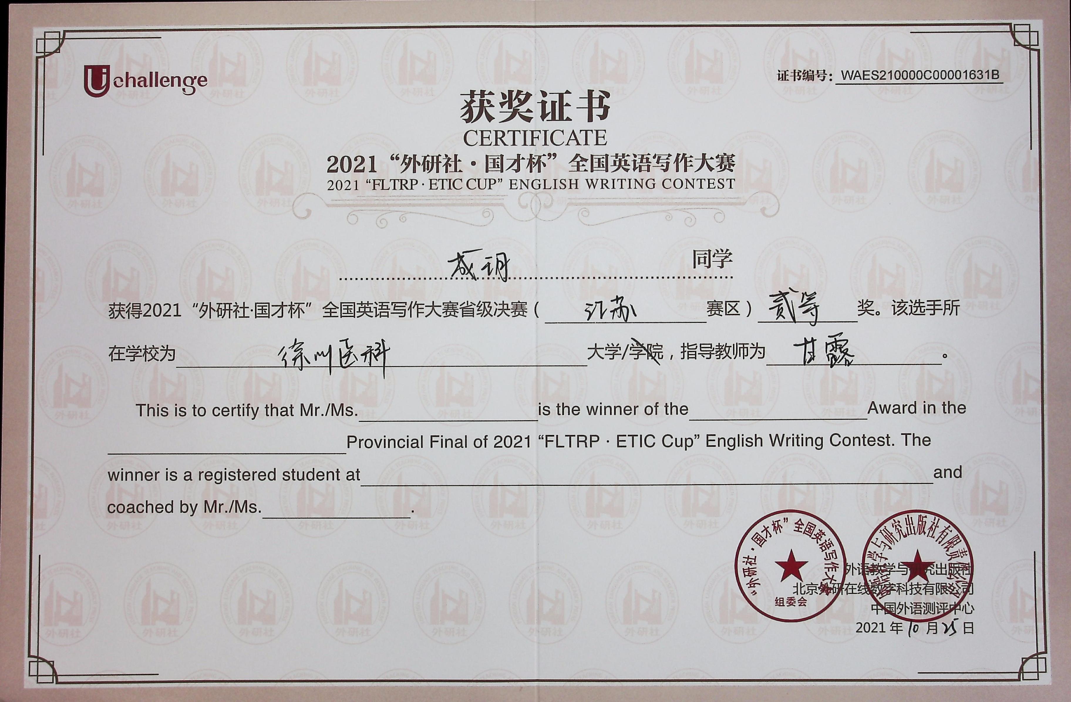 “外研社·国才杯”全国英语大赛有演讲、写作、阅读三个组成部分,是我国规模最大、级别最高、竞争最激烈的全国英语赛事。大赛以国际化人才要求为标准,融入思辨性、拓展性和创造性等关键要素,旨在增强学生的跨文化交际意识,开拓学生国际视野,全面提升学生的外语综合应用能力。因其权威性与专业度,“外研社•国才杯”三个大赛全部被纳入教育部高等教育学会发布的“中国高校创新人才培养暨学科竞赛排行榜”,也是江苏省普通高校学科竞赛省级赛事认定名单中唯一的英语竞赛。