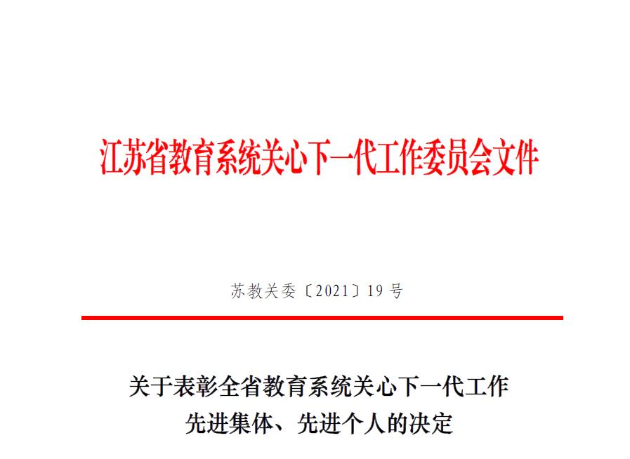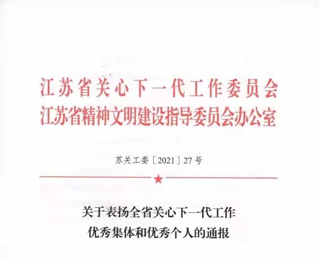 近日,江苏省关心下一代工作委员会、江苏省精神文明建设指导委员会办公室联合下发《关于表扬全省关心下一代工作优秀集体和优秀个人的通报》,江苏省教育系统关心下一代工作委员会下发《关于表彰全省教育系统关心下一代工作先进集体和先进个人的决定》,捕鱼达人 关工委喜获多项省级表彰。捕鱼达人 关工委荣获“江苏省教育系统关心下一代工作先进集体”荣誉称号,王勇同志荣获“江苏省关心下一代工作先进个人”荣誉称号,朱元业同志荣获“江苏省教育系统关心下一代工作先进个人”荣誉称号。
