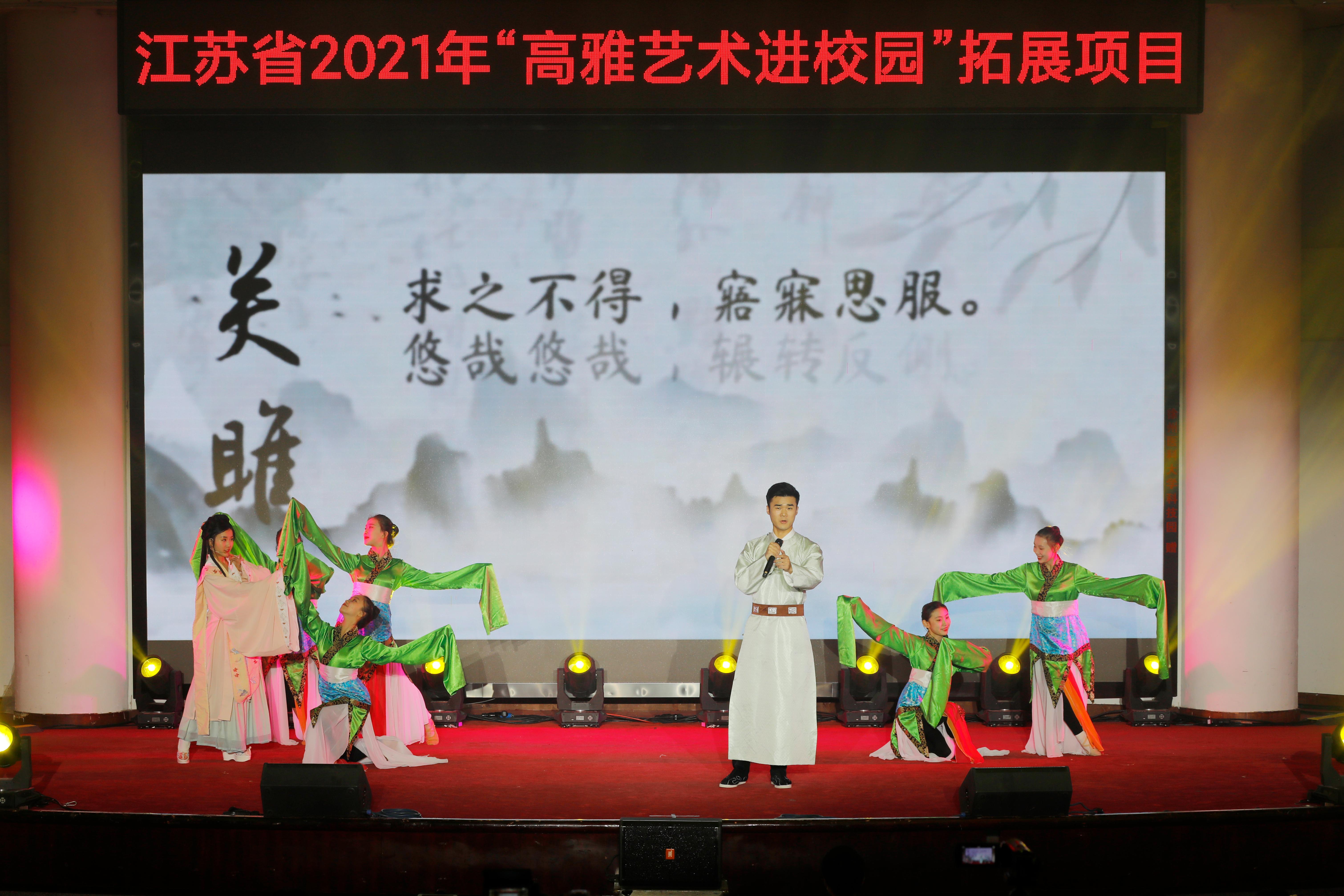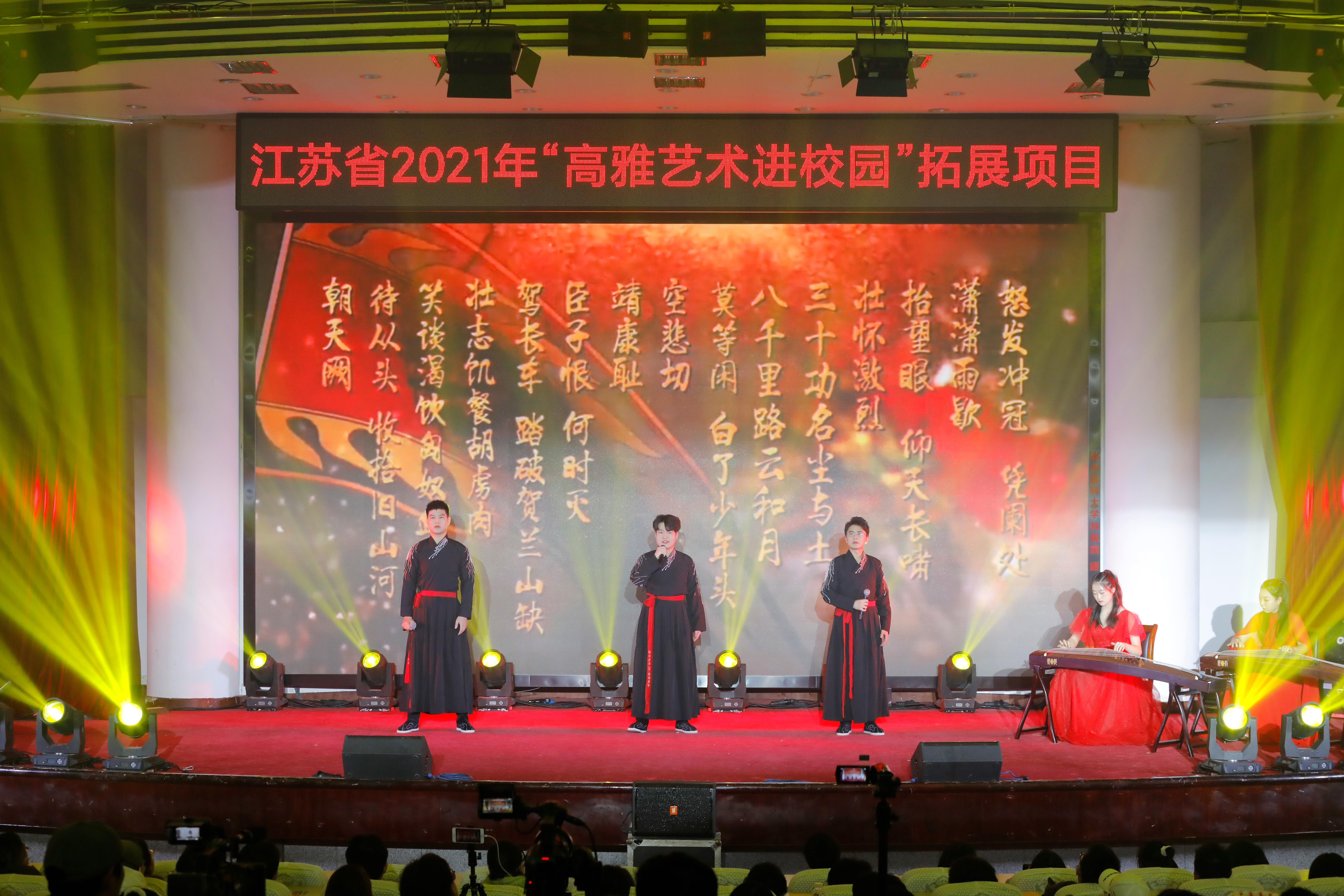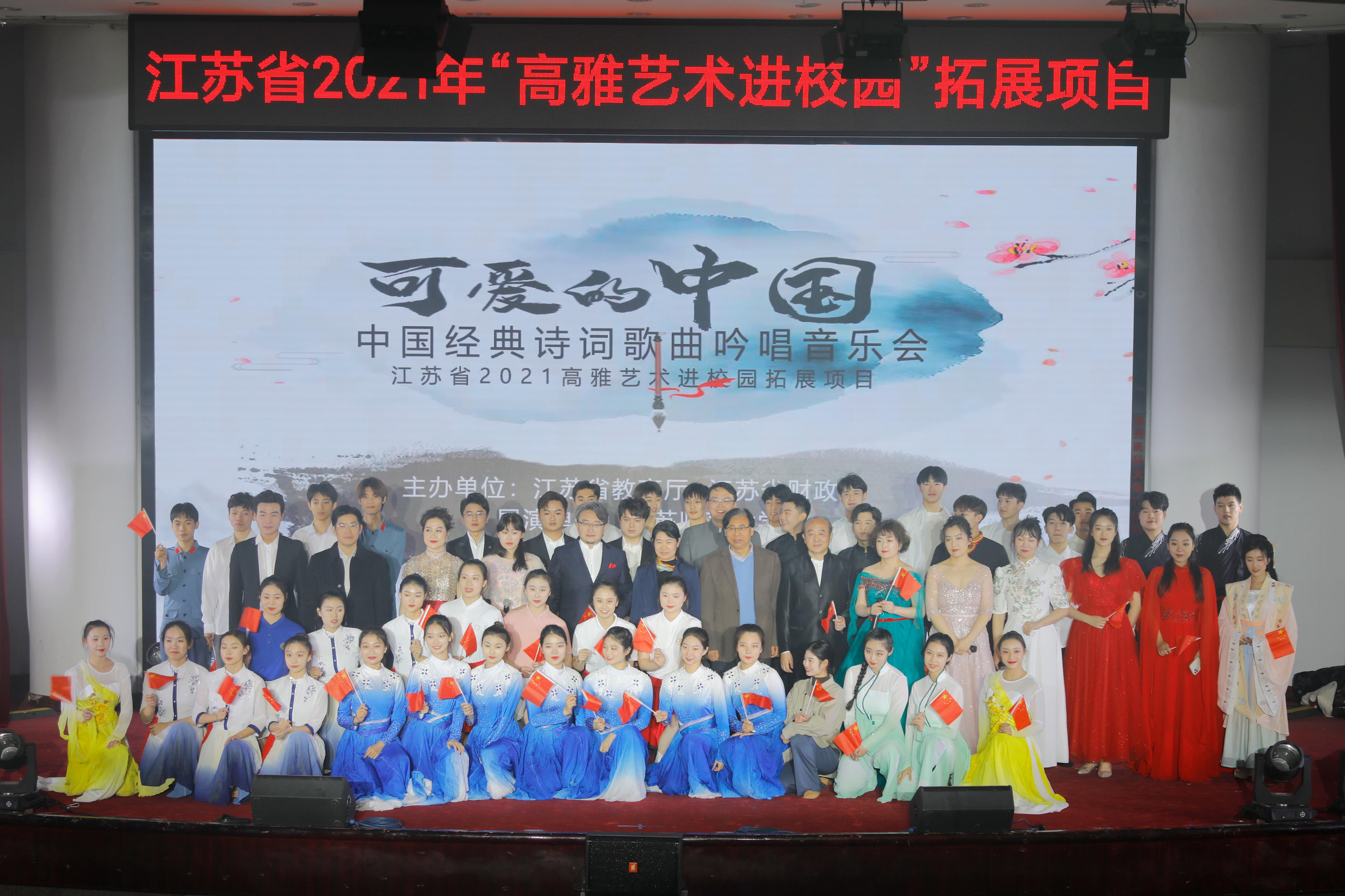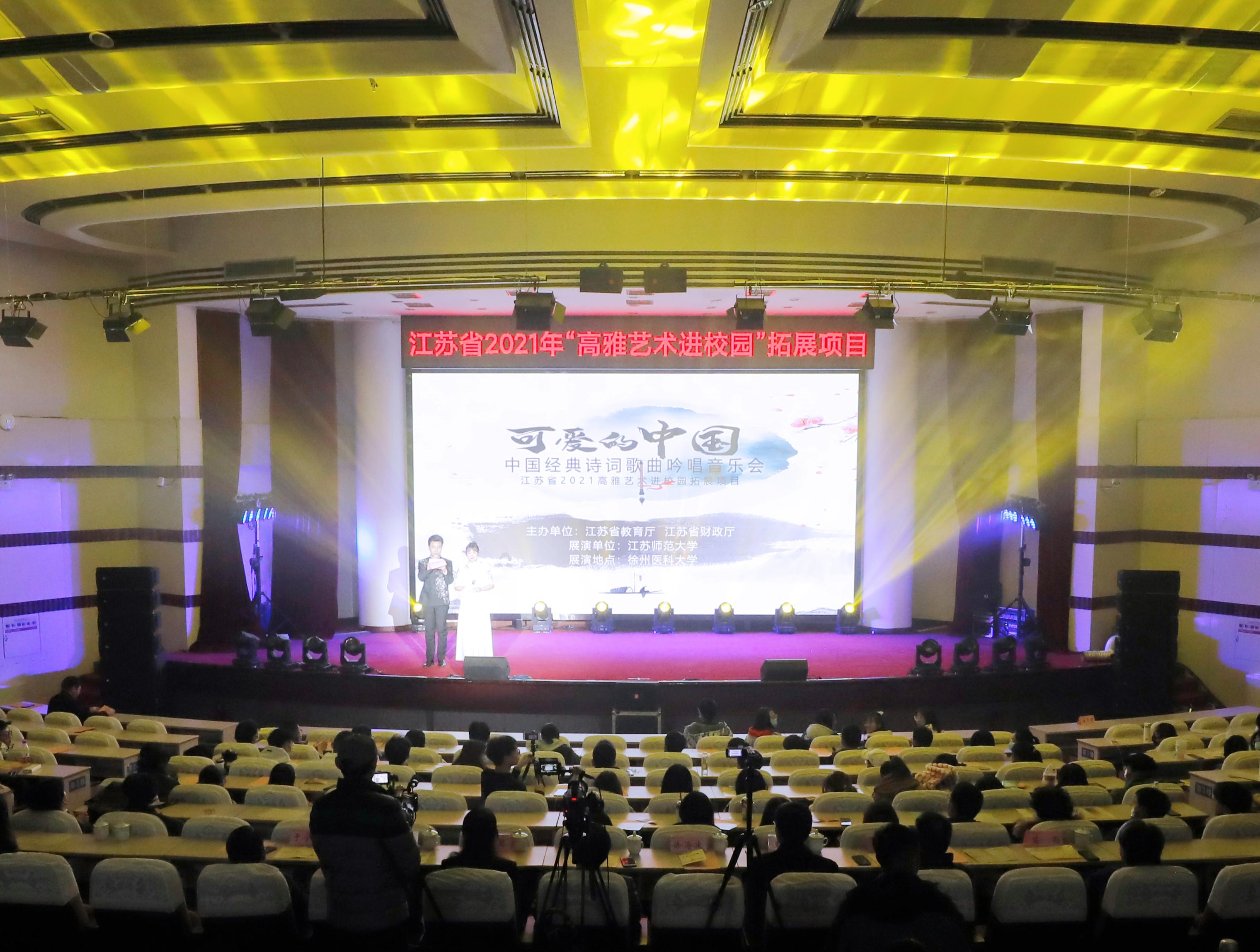 12月12日晚,由江苏师范大学演出团队带来的江苏省2021年“高雅艺术进校园”拓展项目——《可爱的中国》中国经典诗词歌曲吟唱音乐会在捕鱼达人 学术报告厅上演。江苏师范大学党委常委、副校长杜增吉,音乐捕鱼达人 党委书记王友建,音乐捕鱼达人 院长苗雨;捕鱼达人 党委副书记、副校长徐海波,党委常委、宣传部部长、社科处处长熊絮茸和相关职能部门负责人、师生代表一起观看了演出。