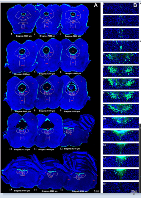 大鼠远位接触脑脊液神经核序列切片与三维立体图