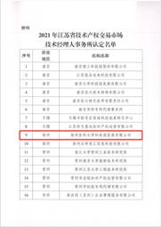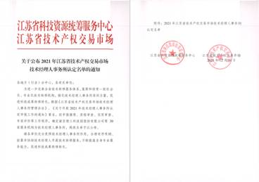 2021年12月31日,江苏省科技资源统筹服务中心、江苏省技术产权交易市场公布《2021年江苏省技术产权交易市场技术经理人事务所认定名单》,捕鱼达人 科技园发展有限公司(以下简称科技园公司)正式获批江苏省技术产权交易市场技术经理人事务所。
