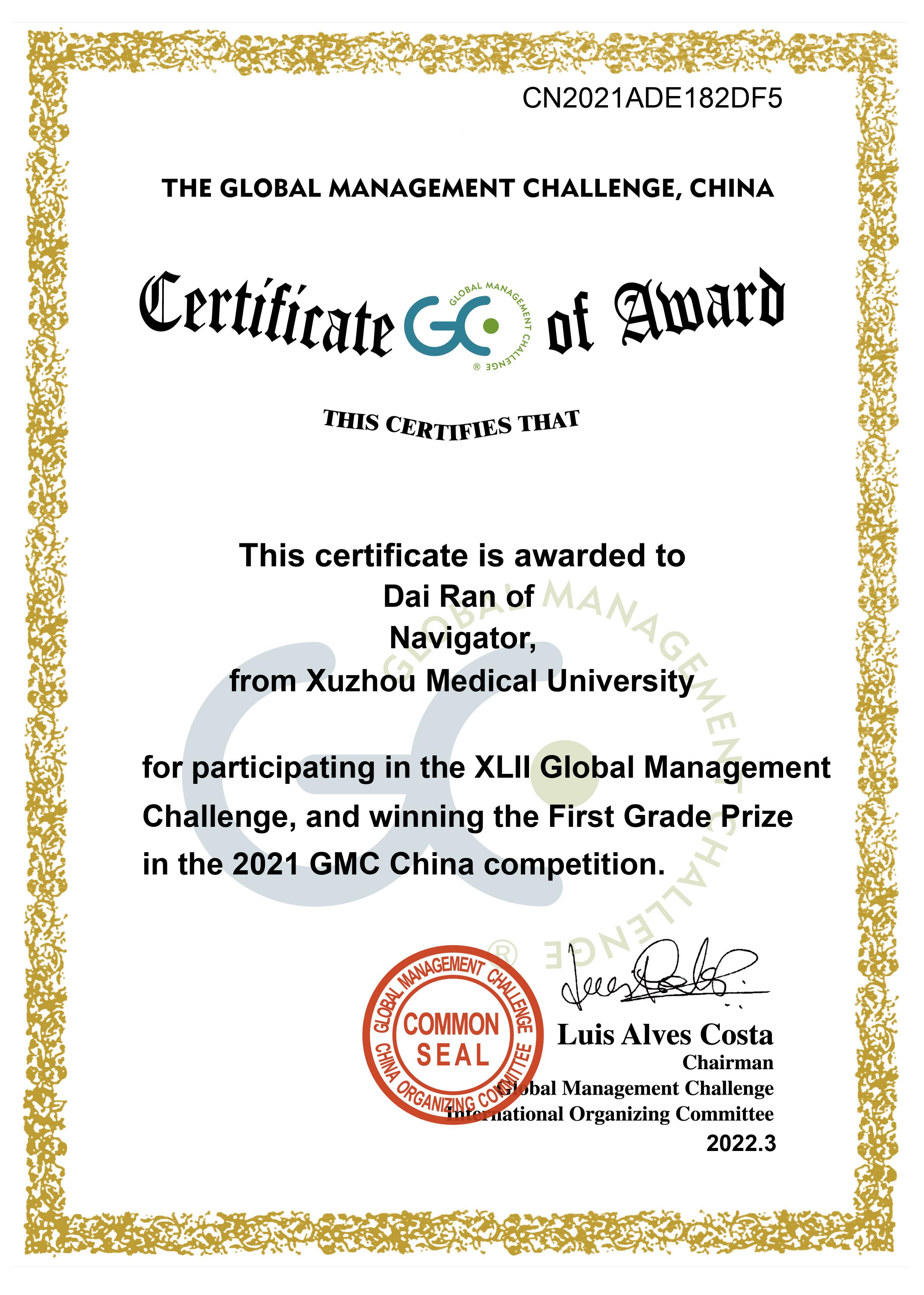 国际企业管理挑战赛(Global Management Challenge, 简称GMC)是一项拥有欧洲管理发展基金会(EFMD)官方认证的横跨五大洲的全球最大规模企业管理模拟比赛,四十年前起源于欧洲,为一年一度的国际级赛事。其宗旨是通过仿真模拟的现代化手段,在全球范围内提高企业管理及高校管理学科模拟教学水平,促进各国企业管理技术的规范化。
