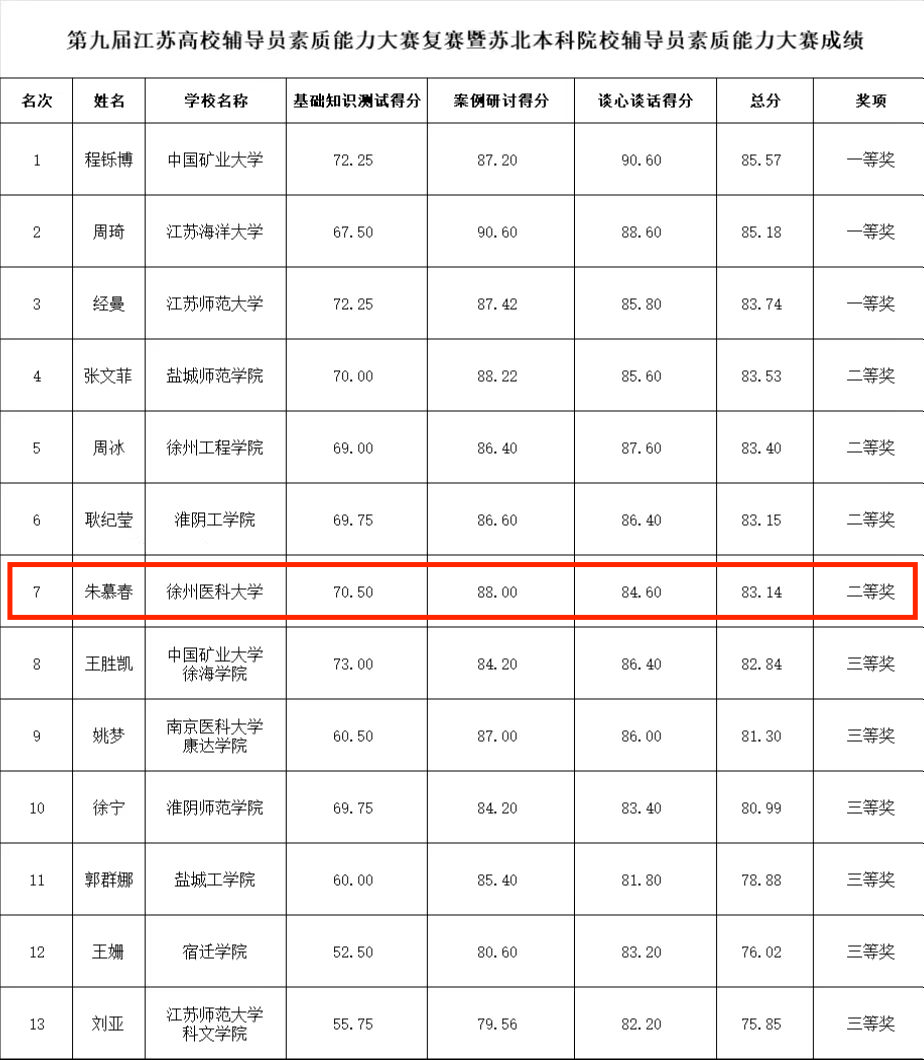 4月23日至24日,由江苏省高校辅导员培训与研修基地(中国矿业大学)主办的第九届江苏高校辅导员素质能力大赛中国矿业大学基地复赛采用线上方式进行。经过两天的激烈角逐,捕鱼达人 生命科学捕鱼达人 辅导员朱慕春获得大赛二等奖。