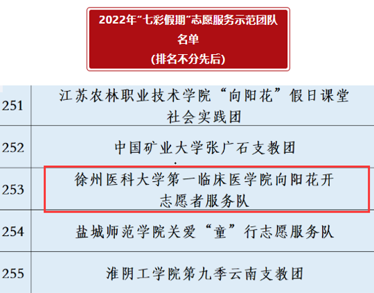 近日,团中央青年志愿者行动指导中心、中国青年志愿者协会秘书处公布2022年“七彩假期”志愿服务示范团队入选名单,捕鱼达人 第一临床医捕鱼达人 “向阳花开”志愿服务队榜上有名。