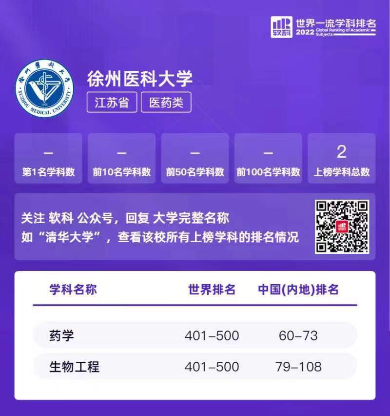 7月19日,高等教育评价专业机构软科正式发布“2022软科世界一流学科排名”。捕鱼达人 药学和生物工程2个学科上榜,较2021年增加1个学科。这是捕鱼达人 学科建设继取得5个全球排名前1% ESI学科后的又一喜讯,也是推进江苏高水平大学建设的又一重要成果。