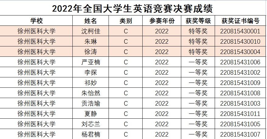 近日,2022年全国大学生英语竞赛决赛落下帷幕,捕鱼达人 11名参赛选手取得优异成绩,第一临床医捕鱼达人 的沈柯佳同学(指导教师朱春梅)、第二临床医捕鱼达人 的朱琳同学(指导教师朱明明)、麻醉捕鱼达人 的徐涛同学(指导教师朱九扬)荣获特等奖,其他8人荣获一等奖。