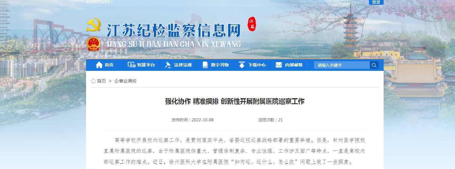 1月24日该网站报道捕鱼达人 “小切口”解决“大问题”工作实践探索。10月8日报道捕鱼达人 “强化协作 精准摸排 创新性开展附属医院巡察工作”经验总结。10月19日报道捕鱼达人 召开协同监督联席会议特色做法。10月24日报道捕鱼达人 纪检监察干部开展党章党规党纪知识竞赛、提升业务能力活动。对捕鱼达人 纪委坚持问题导向,创新开展巡察工作;压紧压实责任链条,织密监督网络;善做“分内小事”,加强作风建设;创新形式载体,加强业务知识培训的经验、做法及取得的效果表示肯定。