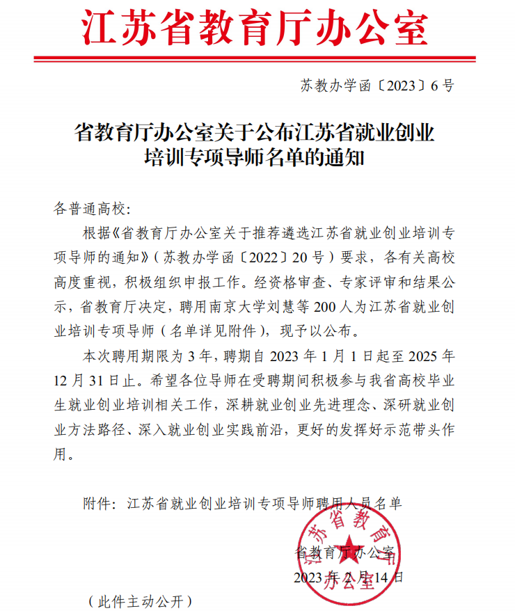 为做好大学生就业创业指导培训工作,进一步提升大学生就业创业指导工作水平,打造一支专家化、专业化、职业化的就业创业指导专家队伍,经资格审查、专家评审和结果公示,江苏省教育厅近日从全省本专科院校、企事业单位共遴选200名就业创业培训专项导师,捕鱼达人 陈玮、宋光辉、谢广明三位老师成功入选,聘期三年。
