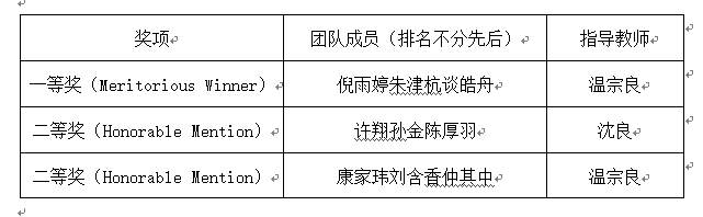 近日,2023年美国大学生数学建模竞赛成绩公布,捕鱼达人 学子表现优异,获得一等奖(Meritorious Winner)1项、二等奖(Honorable Mention)2项,获奖项数创捕鱼达人 历史新高,展现了捕鱼达人 学子良好的精神风貌和实践创新能力。