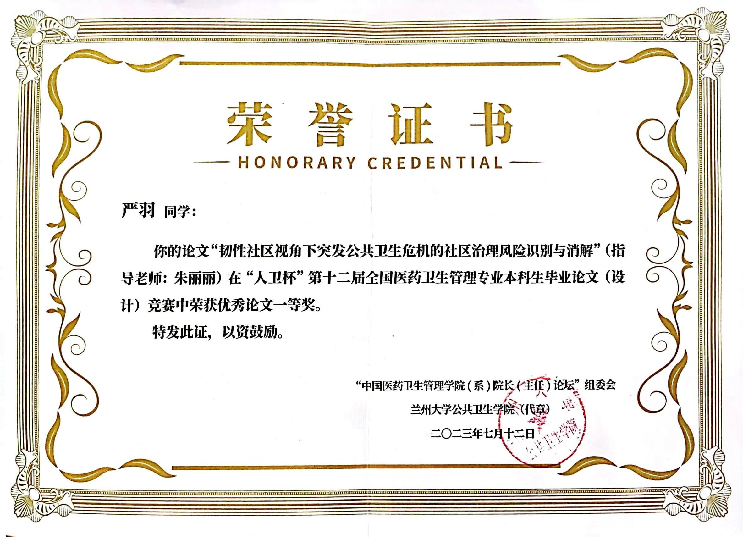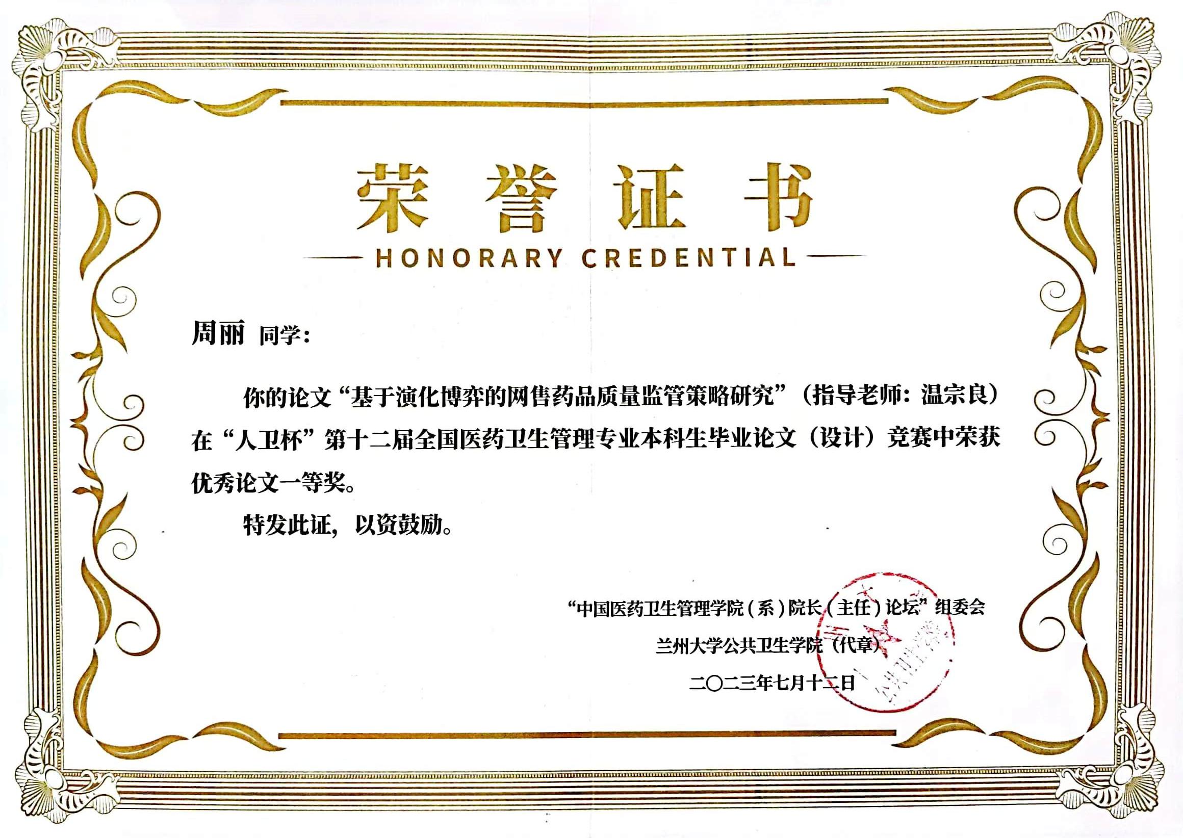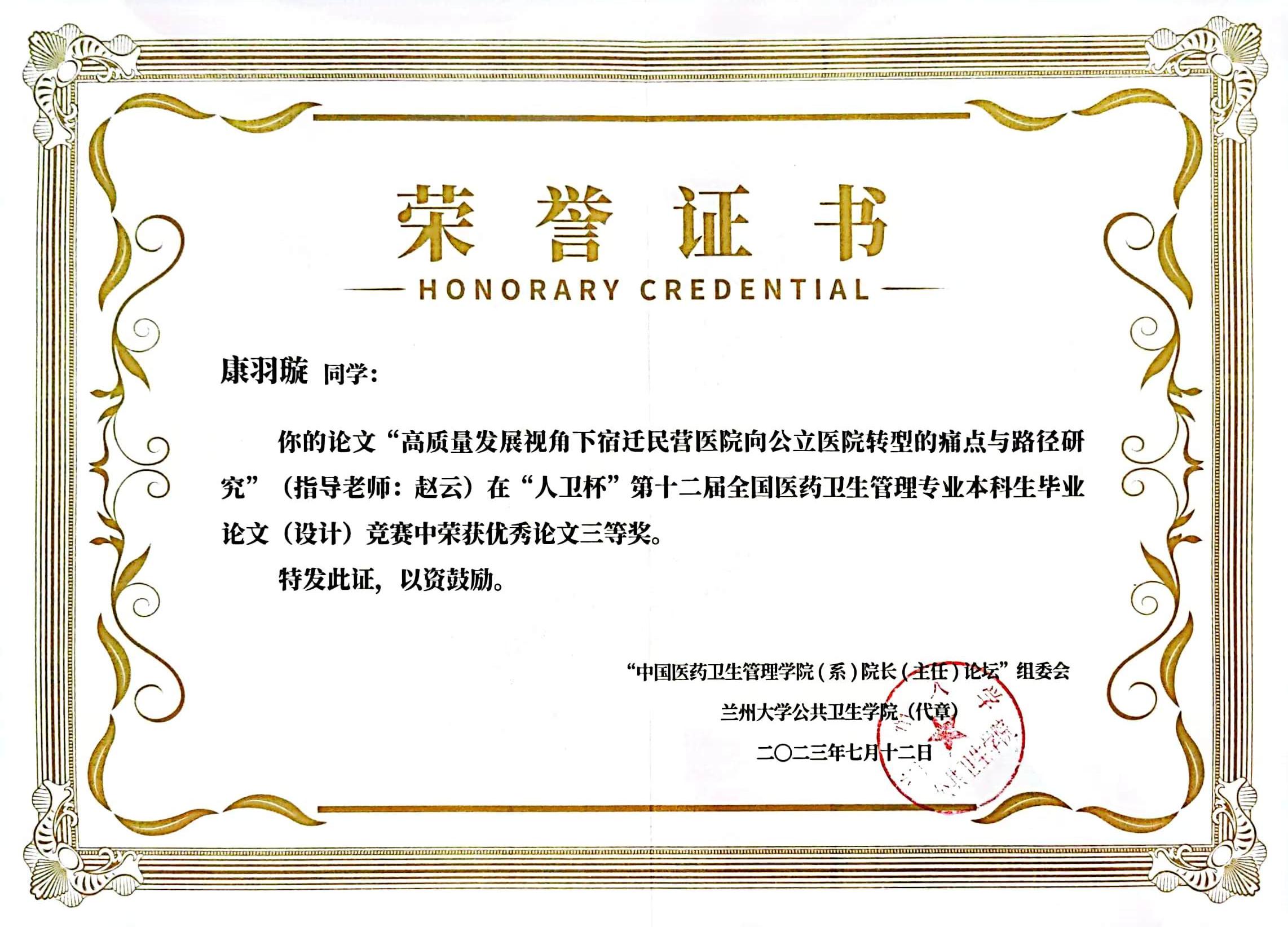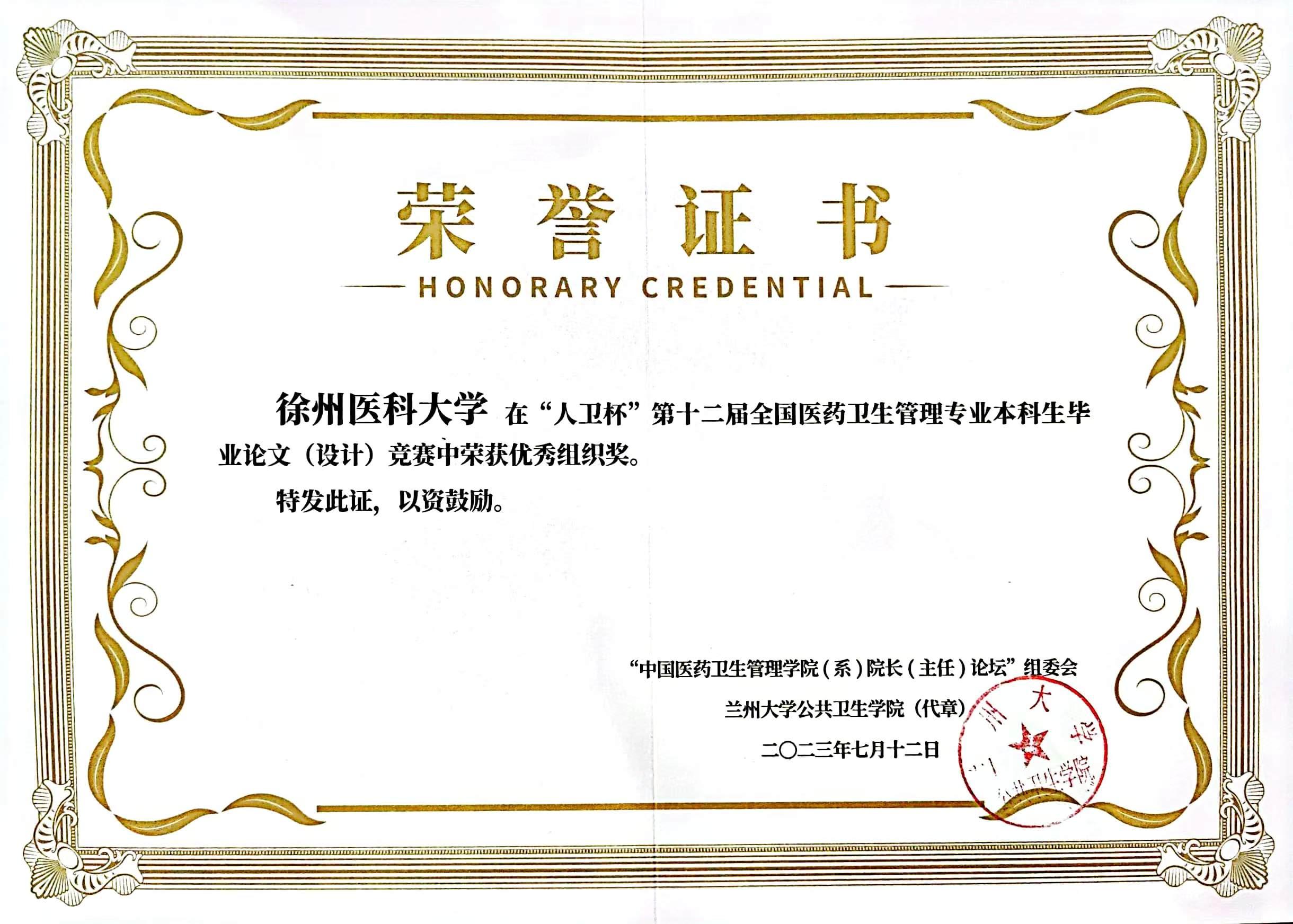 7月11日—13日,第19届中国医药卫生管理捕鱼达人 (系)院长(主任)论坛暨“人卫杯”第十二届全国医药卫生管理专业本科生毕业论文(设计)竞赛在兰州举行。捕鱼达人 管理捕鱼达人 组织参赛的3篇本科生毕业论文分别获一等奖(2项)、三等奖(1项),捕鱼达人 同时获得赛事优秀组织奖。