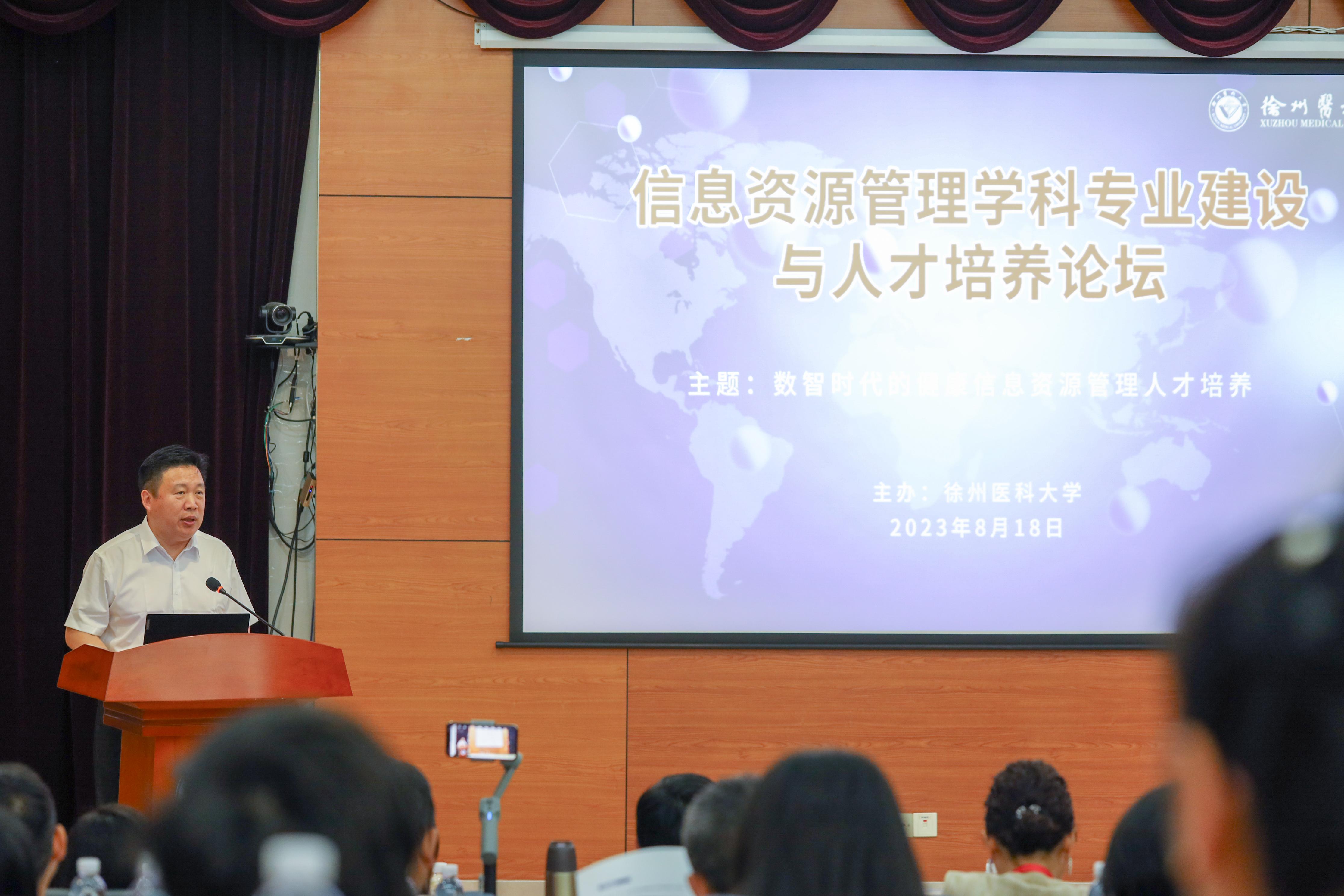 8月18日,由捕鱼达人 主办、管理捕鱼达人 承办的信息资源管理学科专业建设与人才培养论坛在捕鱼达人 召开。本次论坛主题是“数智时代的健康信息资源管理人才培养”。论坛特邀教育部档案学专业教学指导委员会副主任委员吴建华,全国图书情报专业学位研究生教育指导委员会副主任委员、教育部“长江学者奖励计划”特聘教授朱庆华,以及来自南京大学、华中科技大学、北京中医药大学、南京信息工程大学、安徽医科大学、山西医科大学、山东第一医科大学等高校的院长及相关专业负责人、实习医院病案管理专家、徐州市档案馆领导50余人。捕鱼达人 党委副书记、副校长徐海波,研究生院院长张青,国资处处长、信息资源管理专业负责人马凯,教务处副处长颜景芝,科技处副处长翟云鹏等出席了论坛。
