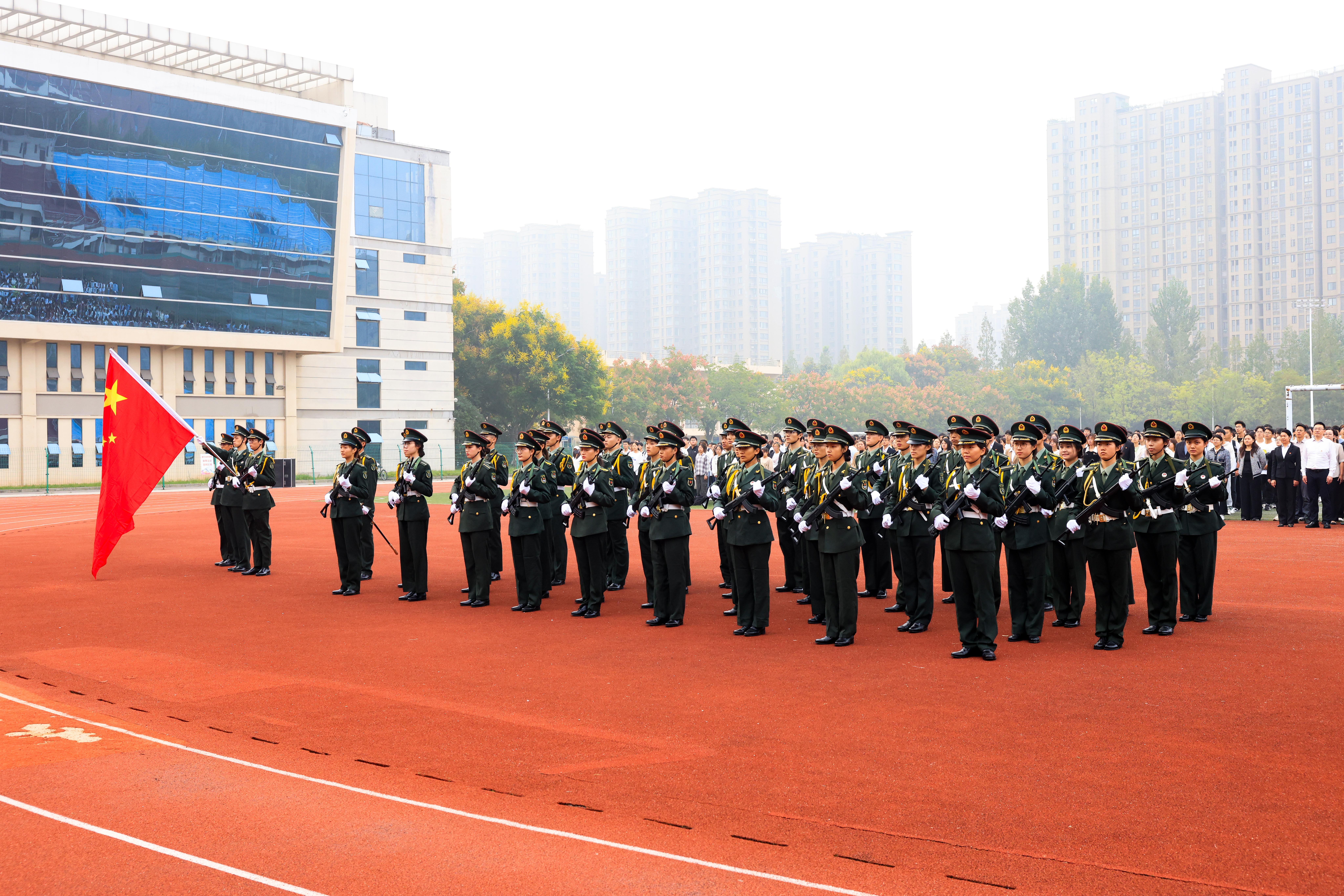 为庆祝中华人民共和国成立74周年,9月28日清晨,捕鱼达人 在主校区运动场举行升国旗仪式。校领导、相关部门负责人、各捕鱼达人 分管学生工作负责人、全体辅导员及2023级新生等3000余人参加升国旗仪式。麻醉捕鱼达人 2021级博士研究生吴可主持仪式。