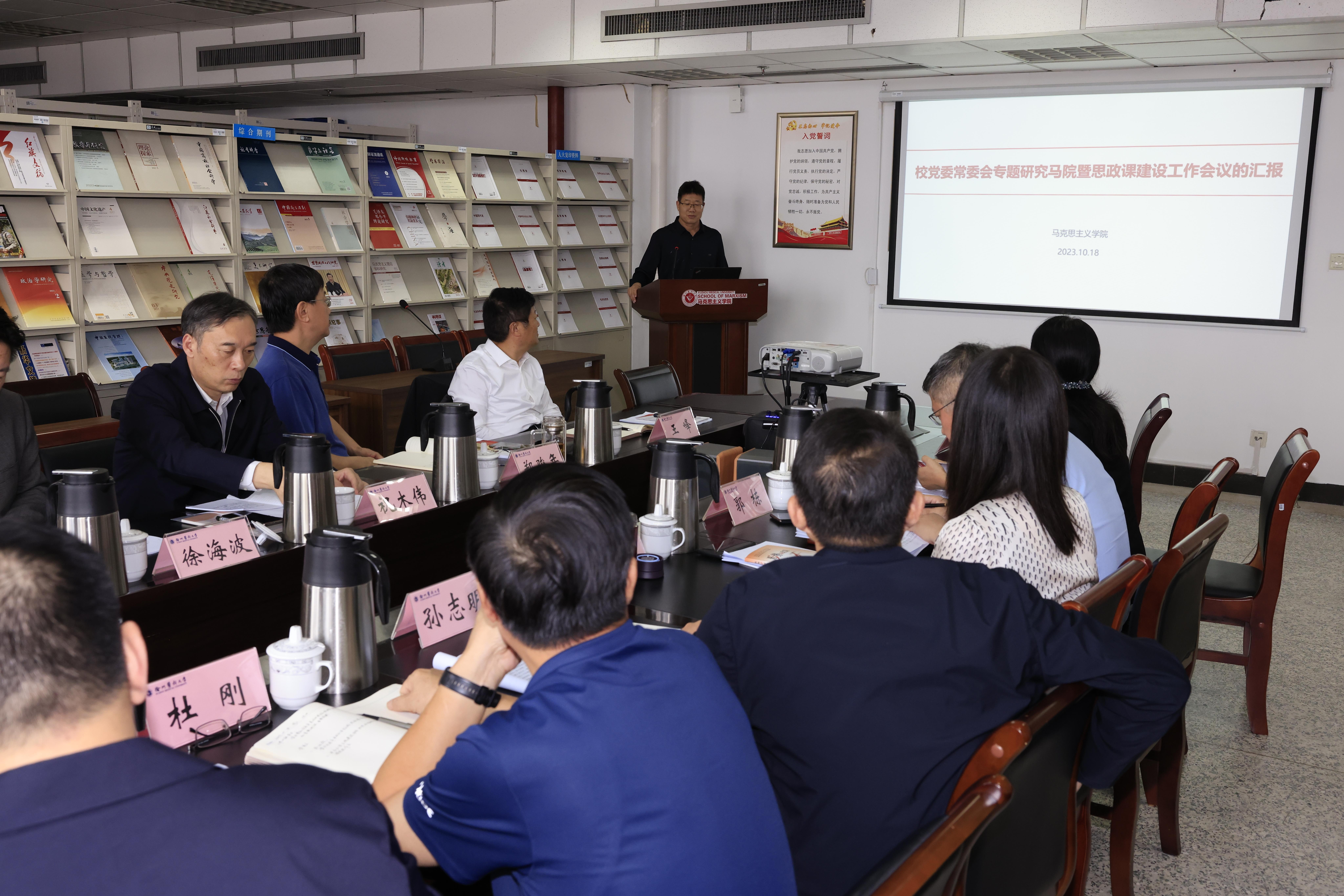 思想政治理论课是落实立德树人根本任务的关键课程。在随后召开的党委常委会上,与会人员围绕习近平总书记关于思政课是落实立德树人根本任务的关键课程系列重要论述、《关于深化新时代捕鱼达人 思想政治理论课改革创新的若干意见》、《普通高等捕鱼达人 马克思主义捕鱼达人 建设标准(2023年版)》等文件要求进行了第一议题学习,并专门听取了马克思主义捕鱼达人 建设工作情况汇报。大家就马克思主义捕鱼达人 的建设目标、具体举措以及加强以习近平新时代中国特色社会主义思想为核心内容的思政课程群建设,如何实现思政课程与课程思政的同向同行、同频共振等问题,进行了专题研讨,并提出了具体的意见和建议。