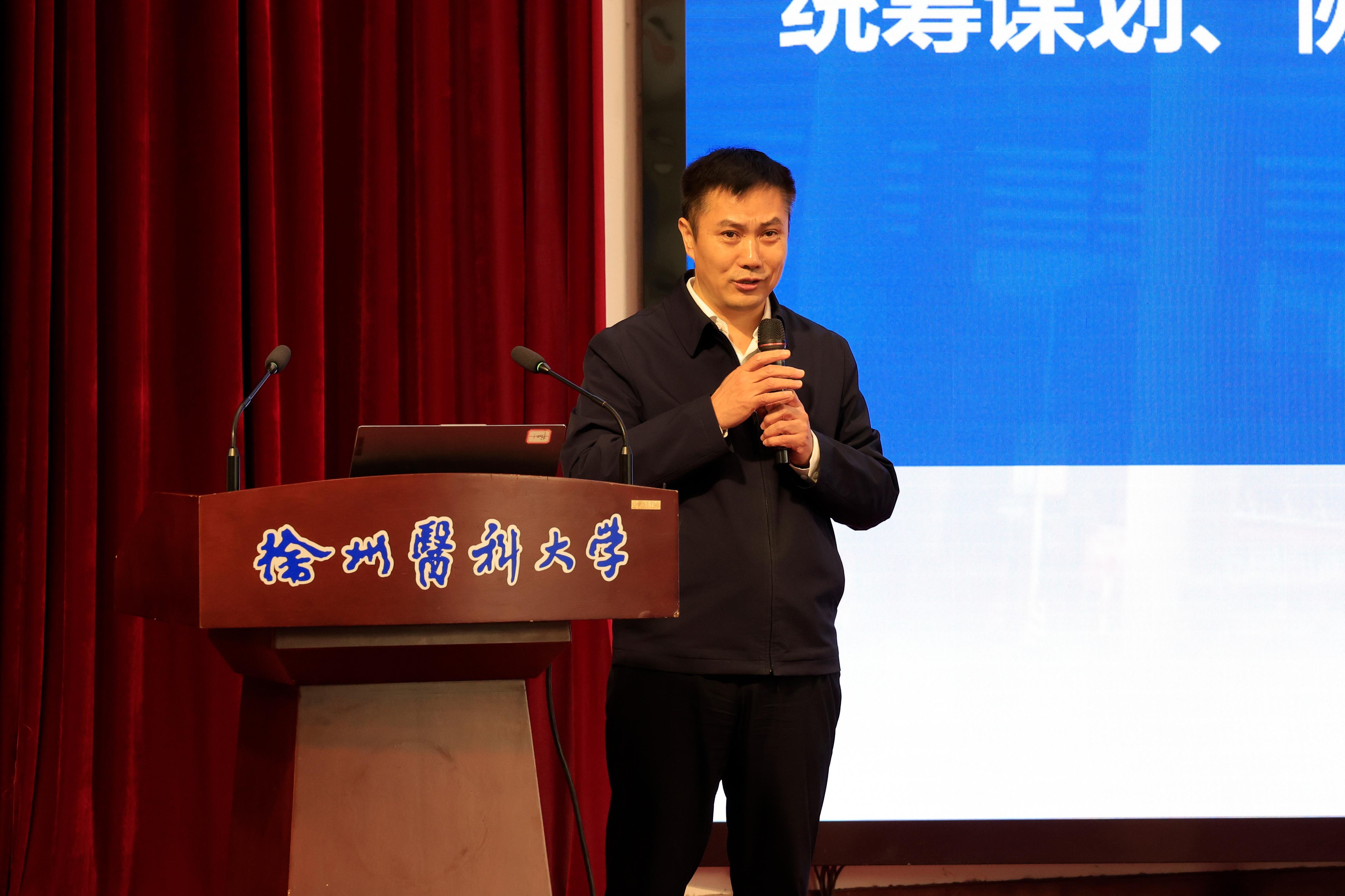 郭栋以“谋势求变、创新发展,构建高质量本科教育教学体系”为题,分析了当前本科教育的形势、不足与差距、任务与措施。他阐述了高等教育发展的内涵和趋势,指出了捕鱼达人 在专业、课程、教学成果建设方面存在的压力与挑战。他指出,培养高质量创新人才是我们的目标,构建捕鱼达人 高质量教育体系必须要强基础,高质量通过新一轮本科评估与临床医学类专业认证,不断提高毕业生执业医师资格考试一次性通过率;必须要提质量,努力实现省优秀基层教学组织和教创赛/青教赛建设的新目标;必须要亮特色,努力在建设国家级现代产业捕鱼达人 、工信部“专精特新”产业捕鱼达人 和国家级教学成果奖上取得新突破。
