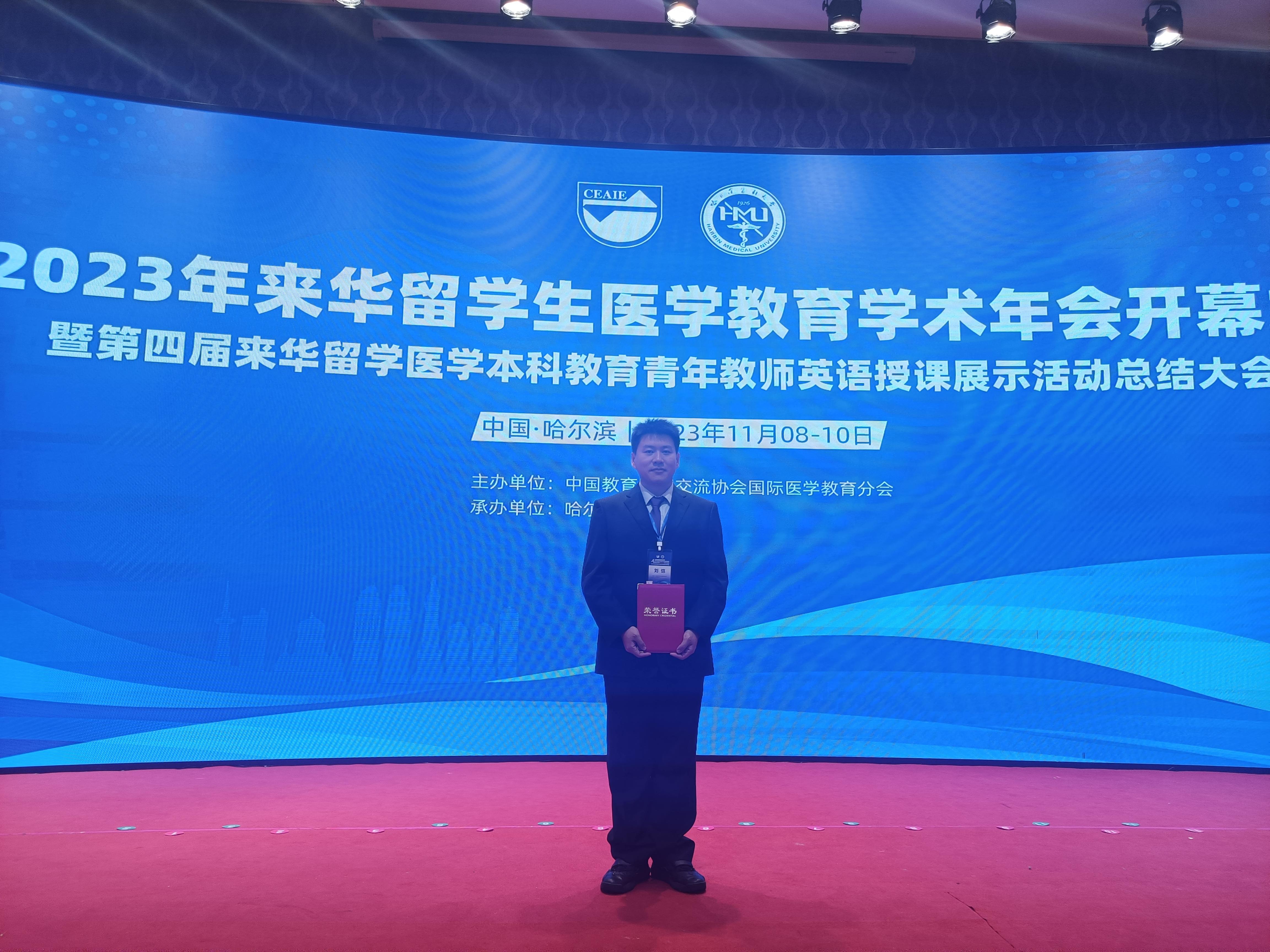 近日,由中国教育国际交流协会国际医学教育分会主办、哈尔滨医科大学承办的全国第四届来华留学医学本科教育青年教师英语授课展示活动在黑龙江省哈尔滨市举行。捕鱼达人 医学影像捕鱼达人 教师刘恺荣获“英语授课教学能手”称号。