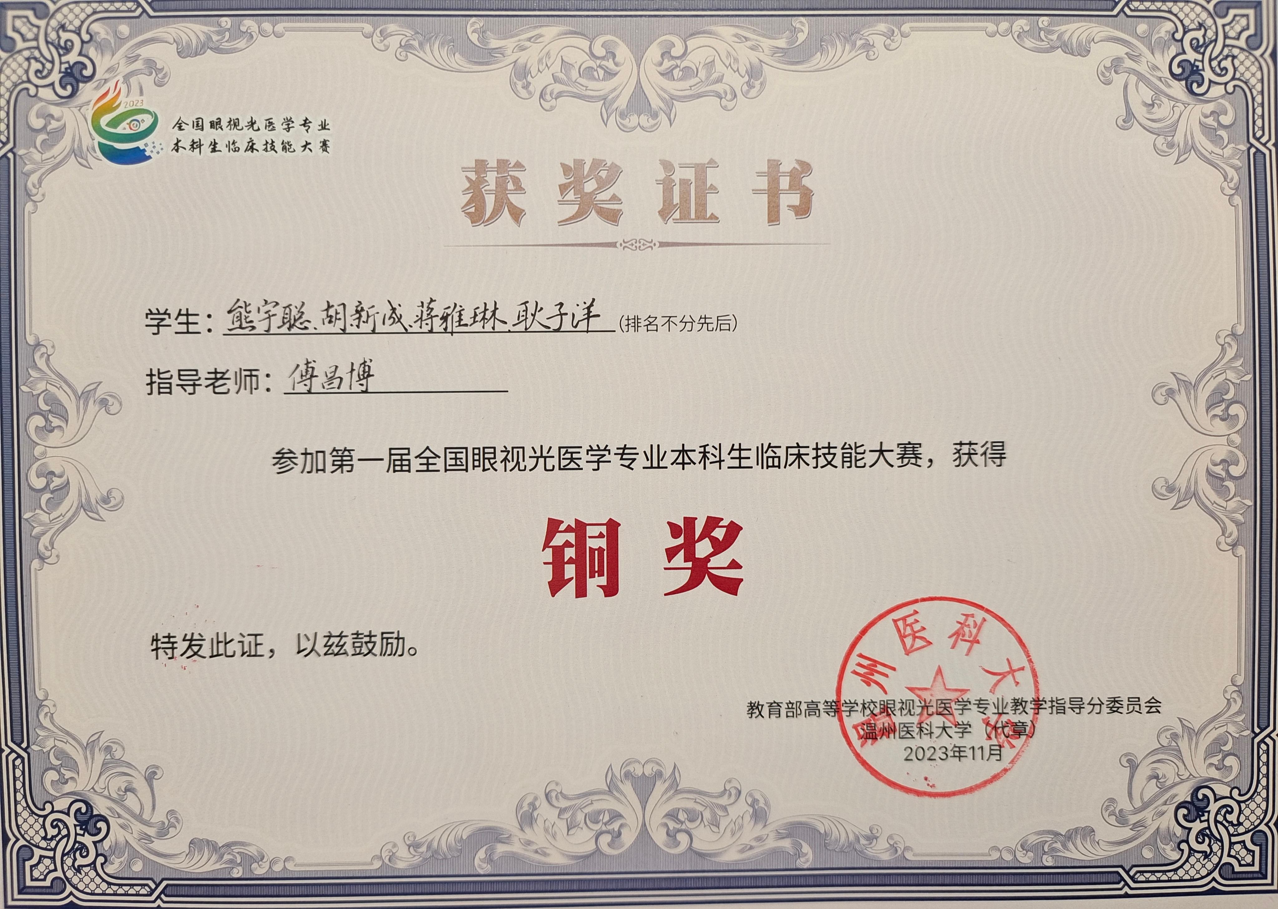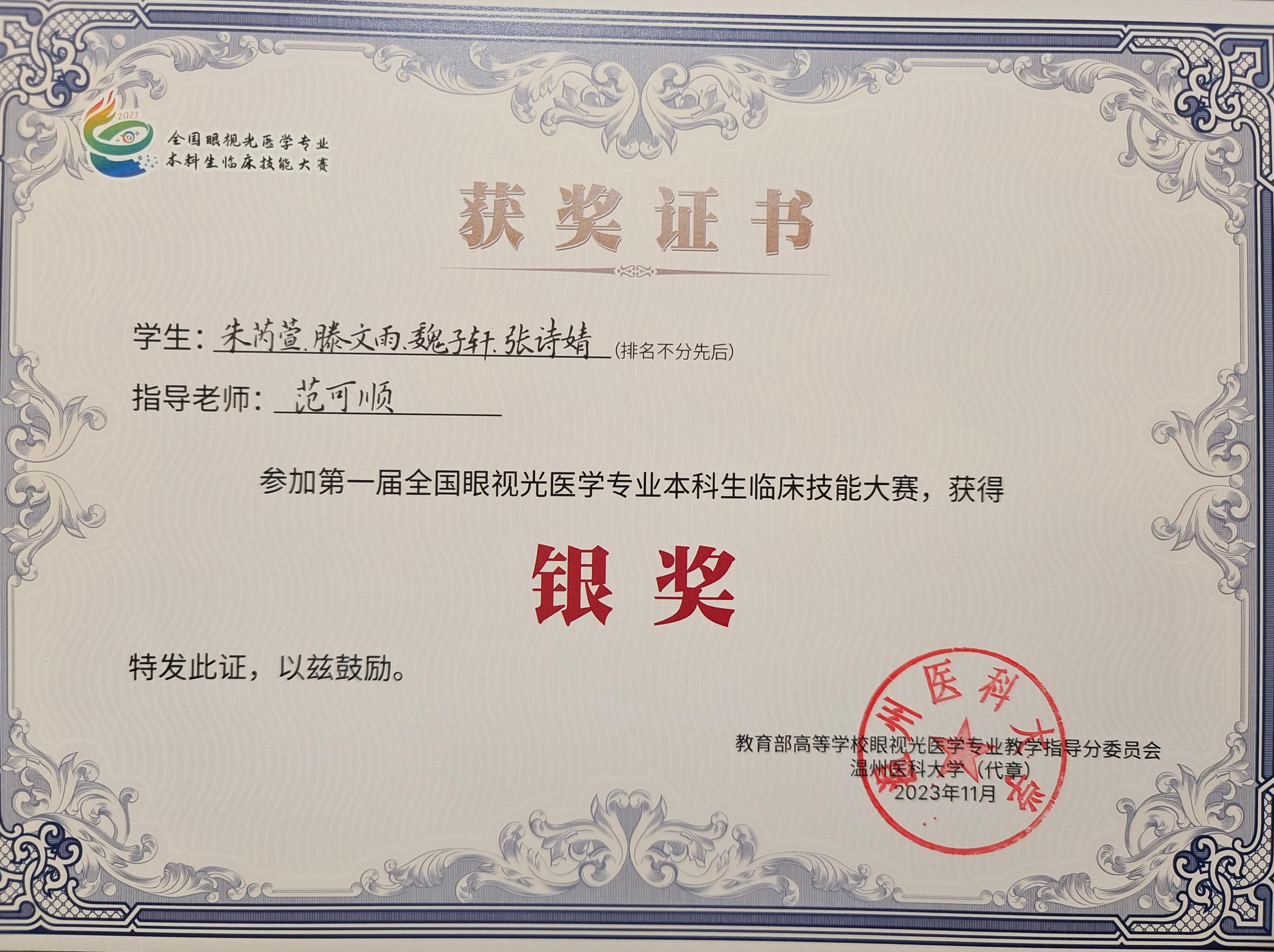 11月17-18日,由教育部高等捕鱼达人 眼视光医学专业教学指导分委员会主办的第一届全国眼视光医学专业本科生临床技能大赛在温州医科大学落下帷幕。捕鱼达人 眼视光医学专业朱芮萱、滕文雨、胡新成等8名同学组成的2支参赛队伍,分别获得银奖和铜奖。