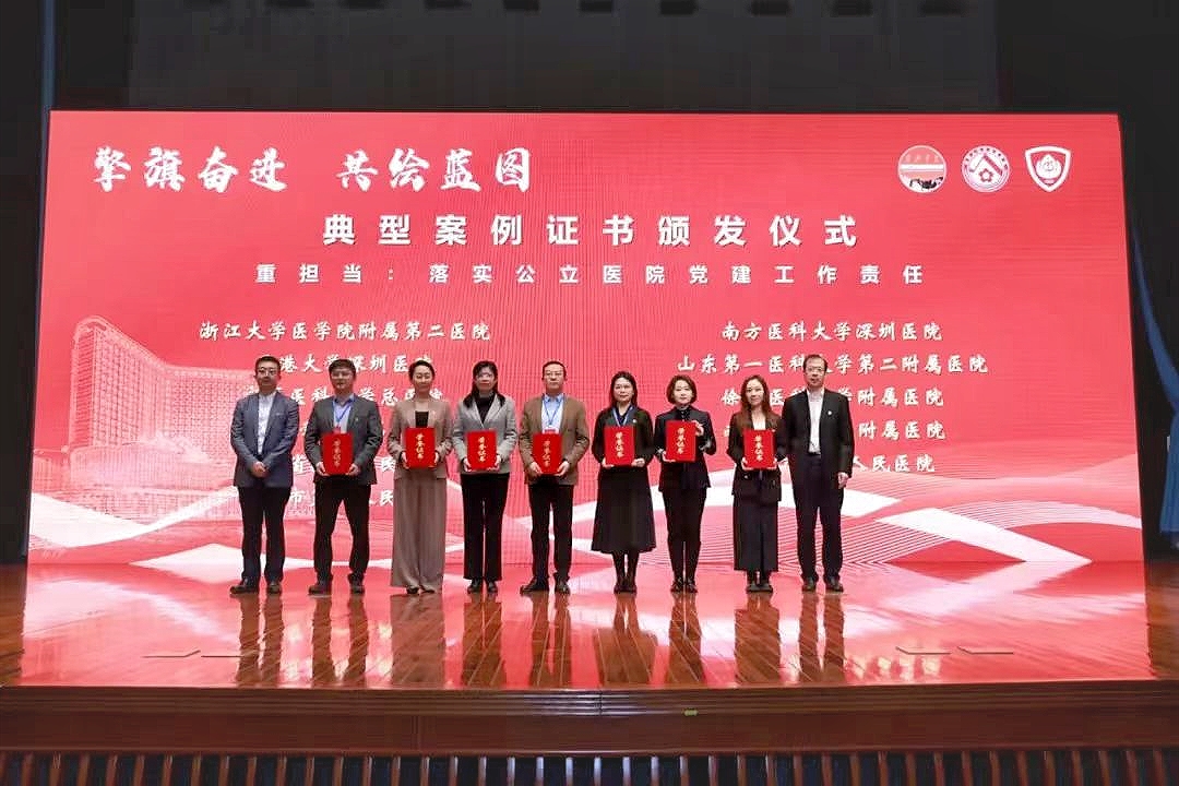 近日,全国党建引领公立医院高质量发展研讨会暨党建引领公立医院高质量发展典型案例征集总结会在上海召开,捕鱼达人 附属医院党委常务副书记季芳代表医院出席会议并上台领奖。徐医附院申报的案例“以价值观重塑引领高质量转型发展”入选党建引领公立医院高质量发展优秀案例。