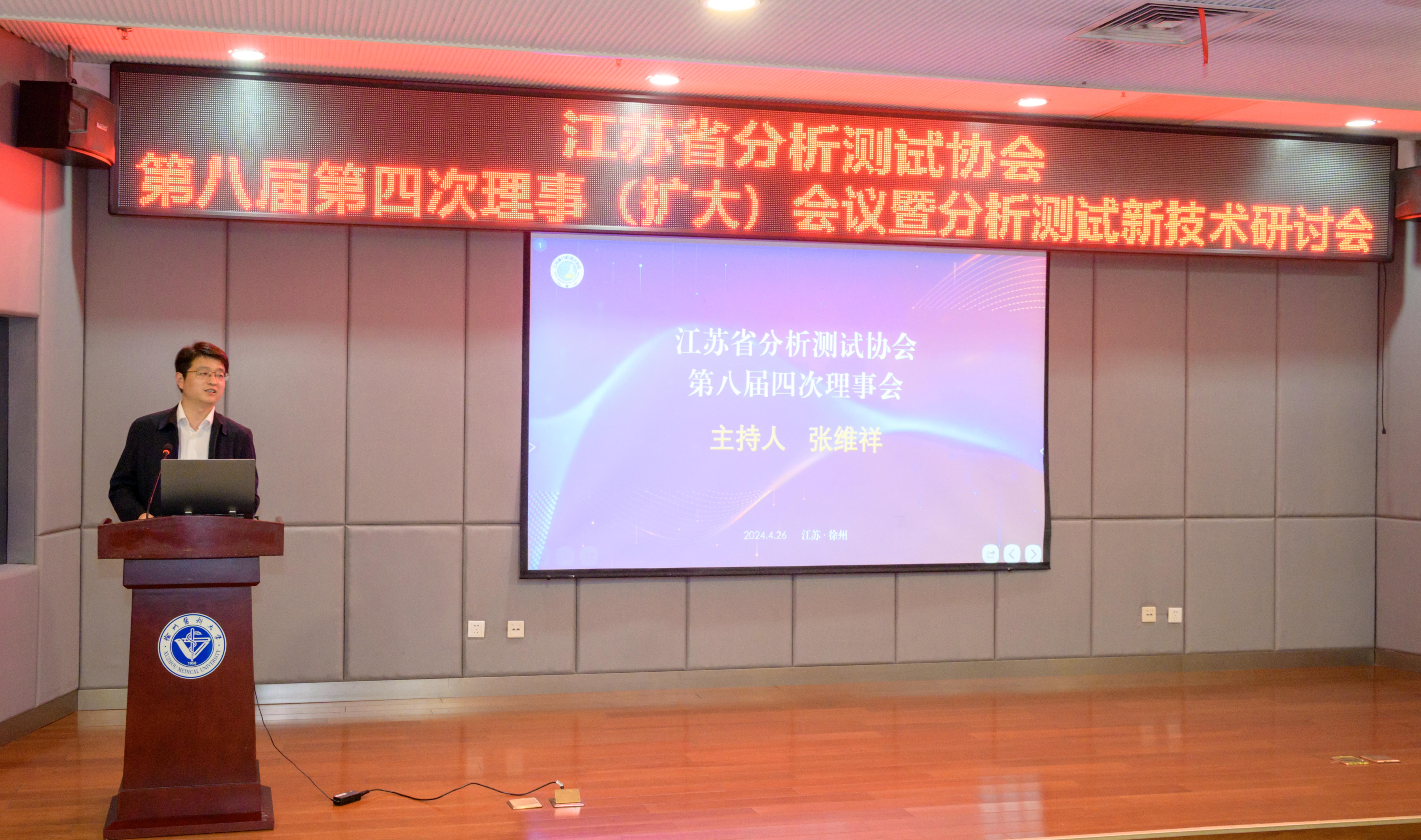 党委常委、副校长郭栋,江苏省生产力促进中心副主任张维祥,江苏省科技资源统筹中心主任段伦超,科学技术处副处长翟云鹏以及省内高校院所分析测试中心、实验室与平台处负责人等出席会议。理事会会议由江苏省分析测试协会理事长张维祥主持,新技术与平台建设研讨会由科学技术处副处长徐洲主持。