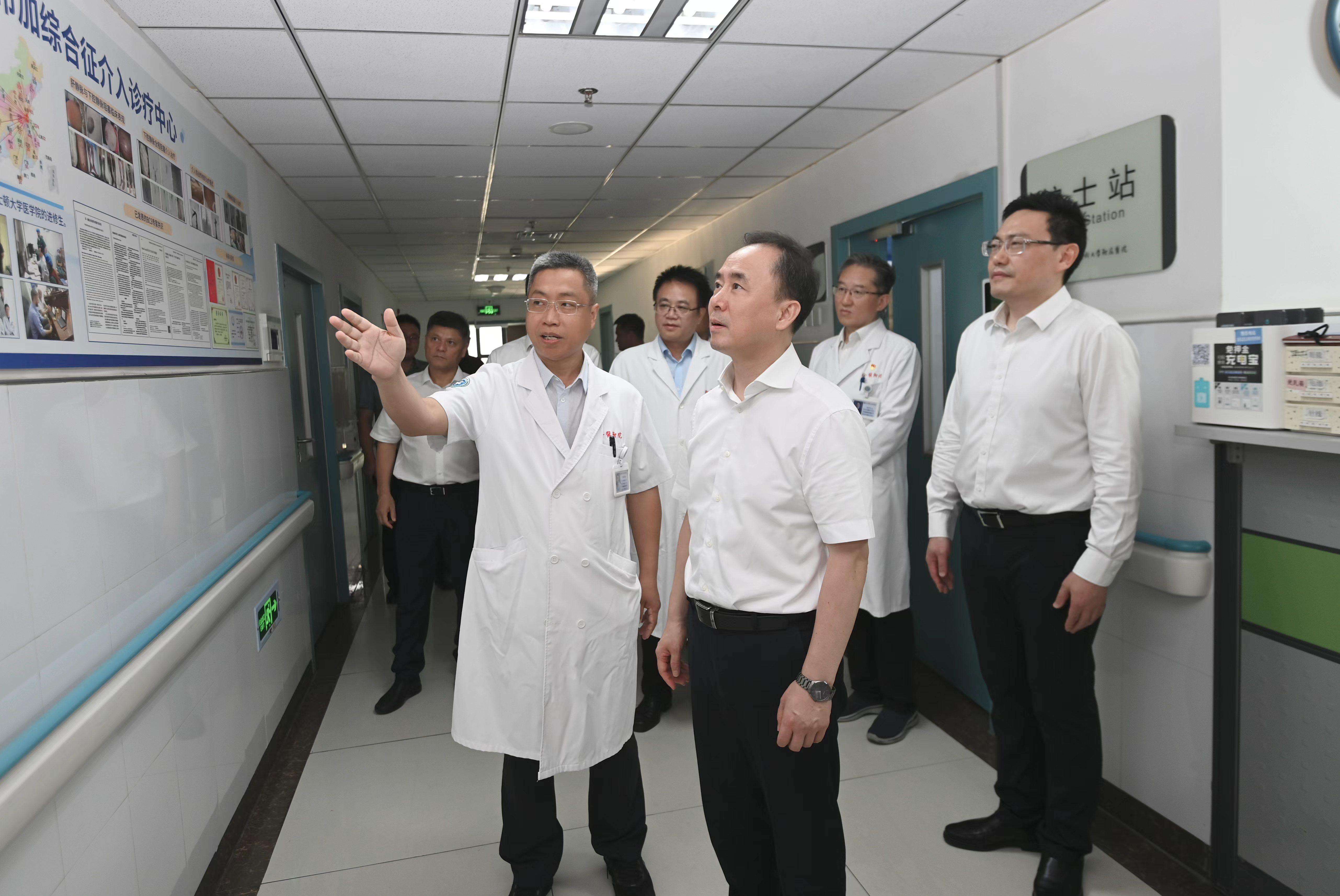 在捕鱼达人 附属医院本部,宋乐伟先后到神经内科、介入科,与医生、就诊群众详细交谈,了解CAR-T细胞治疗技术应用、布加综合征治疗取得的成效,并实地了解门诊医技楼建设推进情况。他指出,推动医院高质量发展,人才是关键,要深化公立医院改革,健全现代医院管理制度,充分激发人才活力,打造更多医疗“高峰”,更好赋能医院高质量发展,为徐州打造区域医疗中心注入强劲动能。捕鱼达人 党委常委、副校长、徐医附院党委书记吕凌,徐医附院院长金培生等陪同调研。