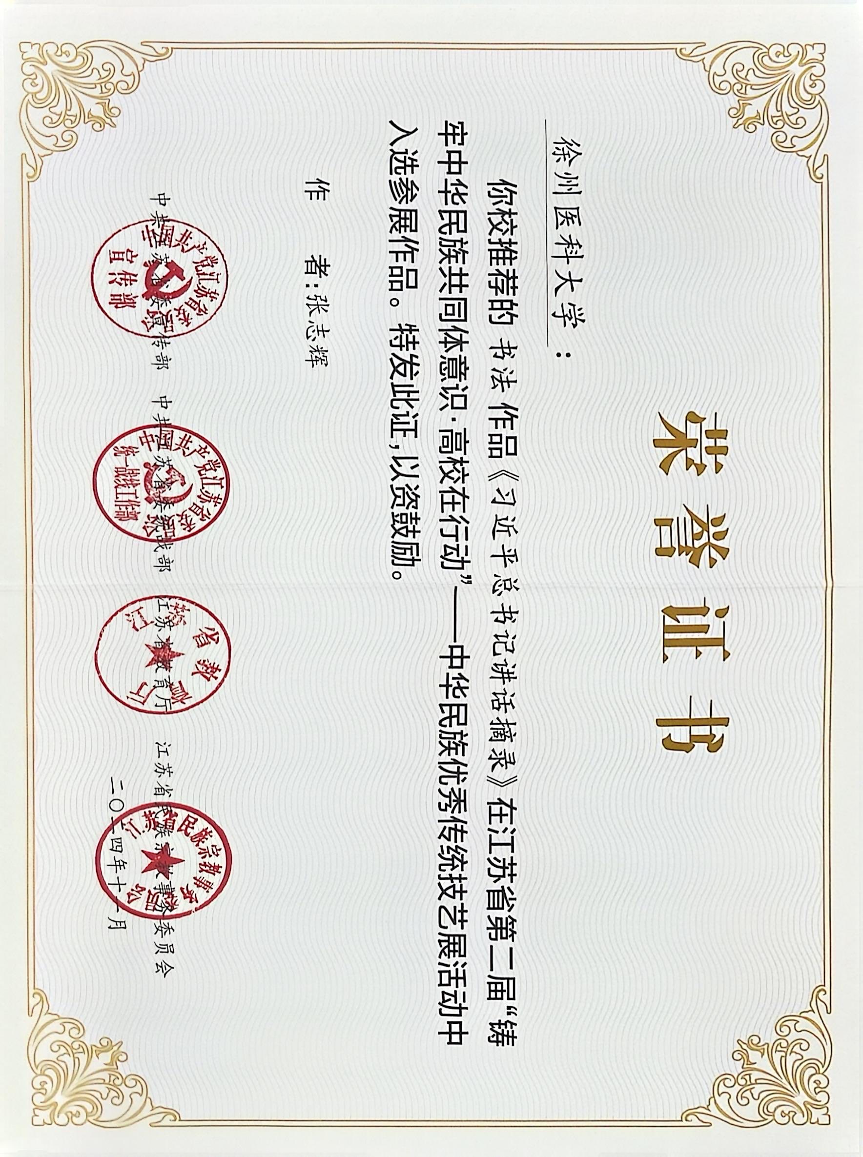 11月6日,江苏省第二届“铸牢中华民族共同体意识·高校在行动”系列活动总结会在苏州大学举行。捕鱼达人 推荐的书法作品《习近平总书记讲话摘录》入选“中华民族优秀传统技艺展”参展作品。
