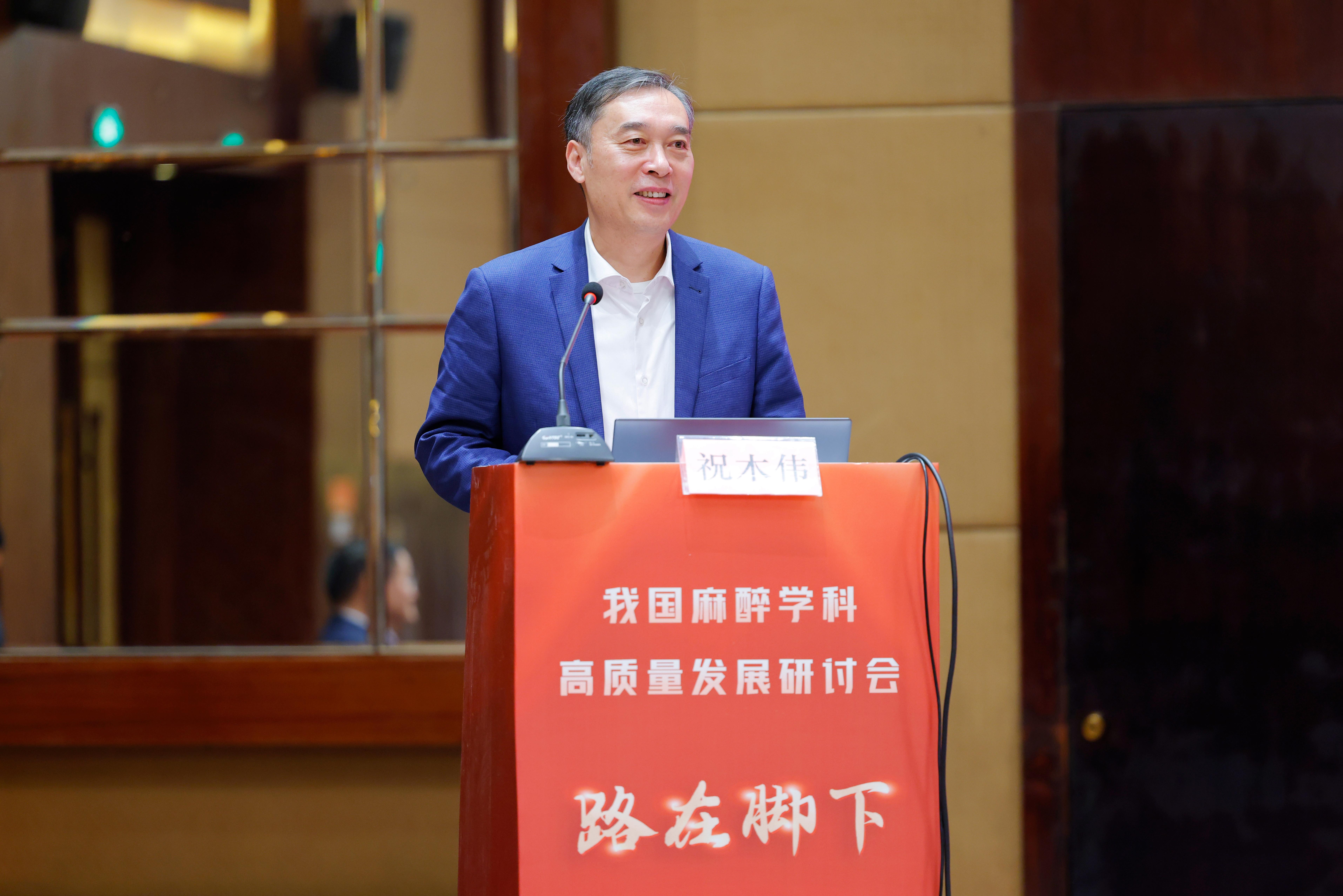 祝木伟对一直以来关心支持捕鱼达人 事业发展特别是麻醉学科发展的专家学者们表示感谢,他介绍了捕鱼达人 麻醉学科发展历史和取得的丰硕成果,向在麻醉学科建设和发展历程中作出历史性贡献的曾因明教授表达了崇高的敬意,并指出本次研讨会的举办必将对我国麻醉学科高质量发展起到重要的推动作用。
