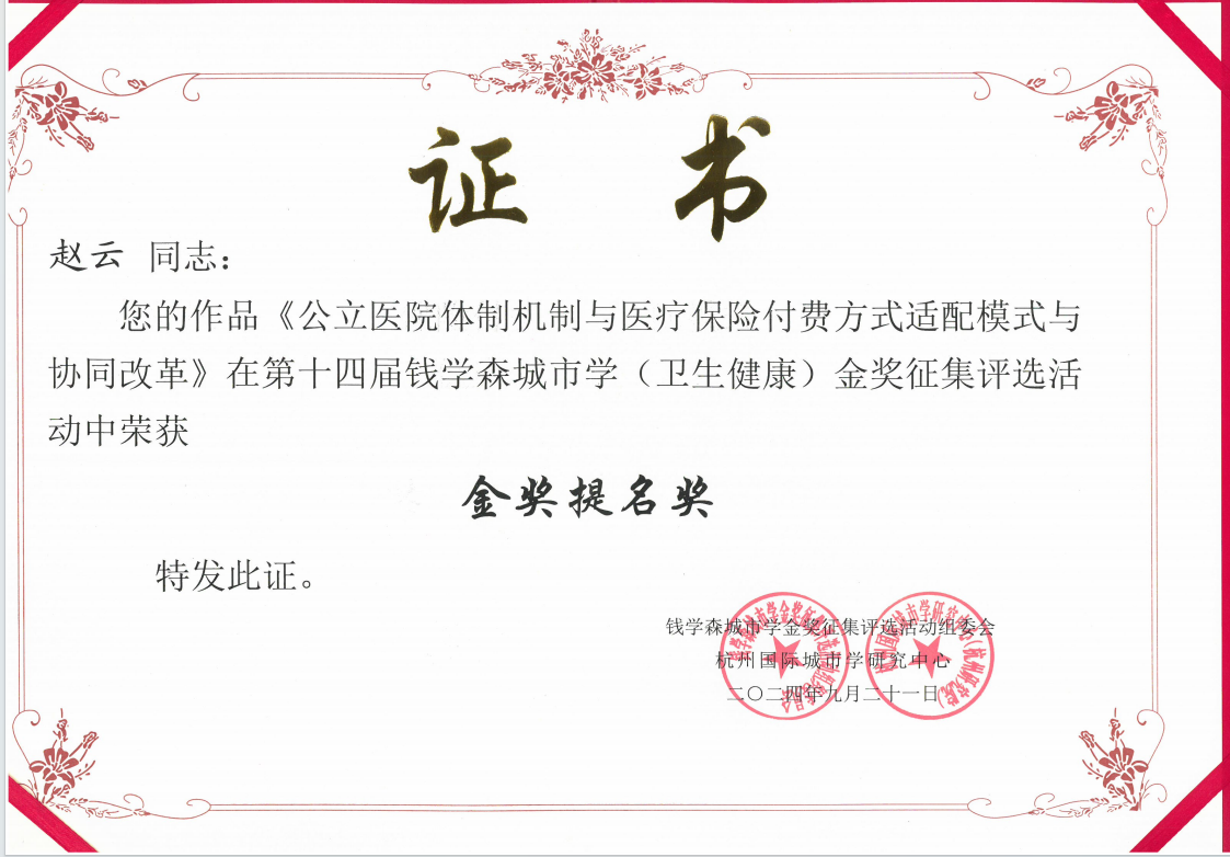 近日,第十四届“钱学森城市学金奖”评选结果揭晓。捕鱼达人 管理捕鱼达人 赵云教授的学术专著《公立医院体制机制与医疗保险付费方式适配性研究》获得本届钱学森城市学(卫生健康)金奖提名奖。这是捕鱼达人 学术成果首次获得该奖项提名奖。