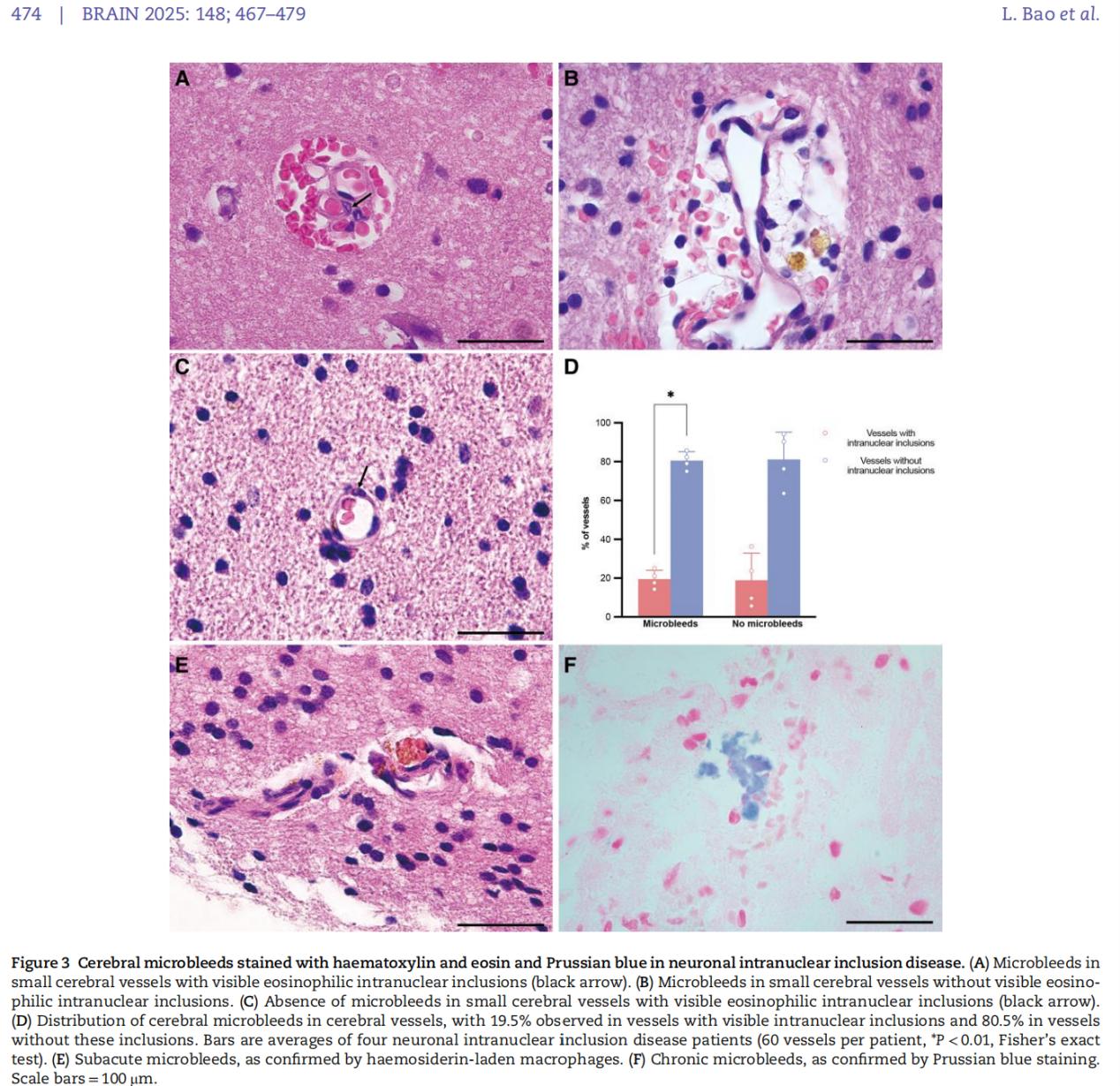 此项研究具有多个 “首次” 突破。研究首次揭示,在 NOTCH2NLC 基因 GGC 三核苷酸序列重复扩增的情况下,uN2CpolyG 蛋白不仅会引发神经元核内包涵体病(NIID),还可导致脑小血管病。团队首次提出,这种脑小血管病的病理基础可能是脑淀粉样血管病(CAA),进一步扩展了该基因的致病谱系,同时首次发现由该基因突变导致的第七种非 Aβ 脑淀粉样血管病。考虑到该基因突变在中国和日本人群中的高发性,这一新发现的类型很可能代表东亚型(East Asian type)脑淀粉样血管病。这一成果对深入理解神经元核内包涵体病和脑淀粉样血管病的发病机制意义重大,更为相关疾病的诊断和治疗开拓了全新思路。