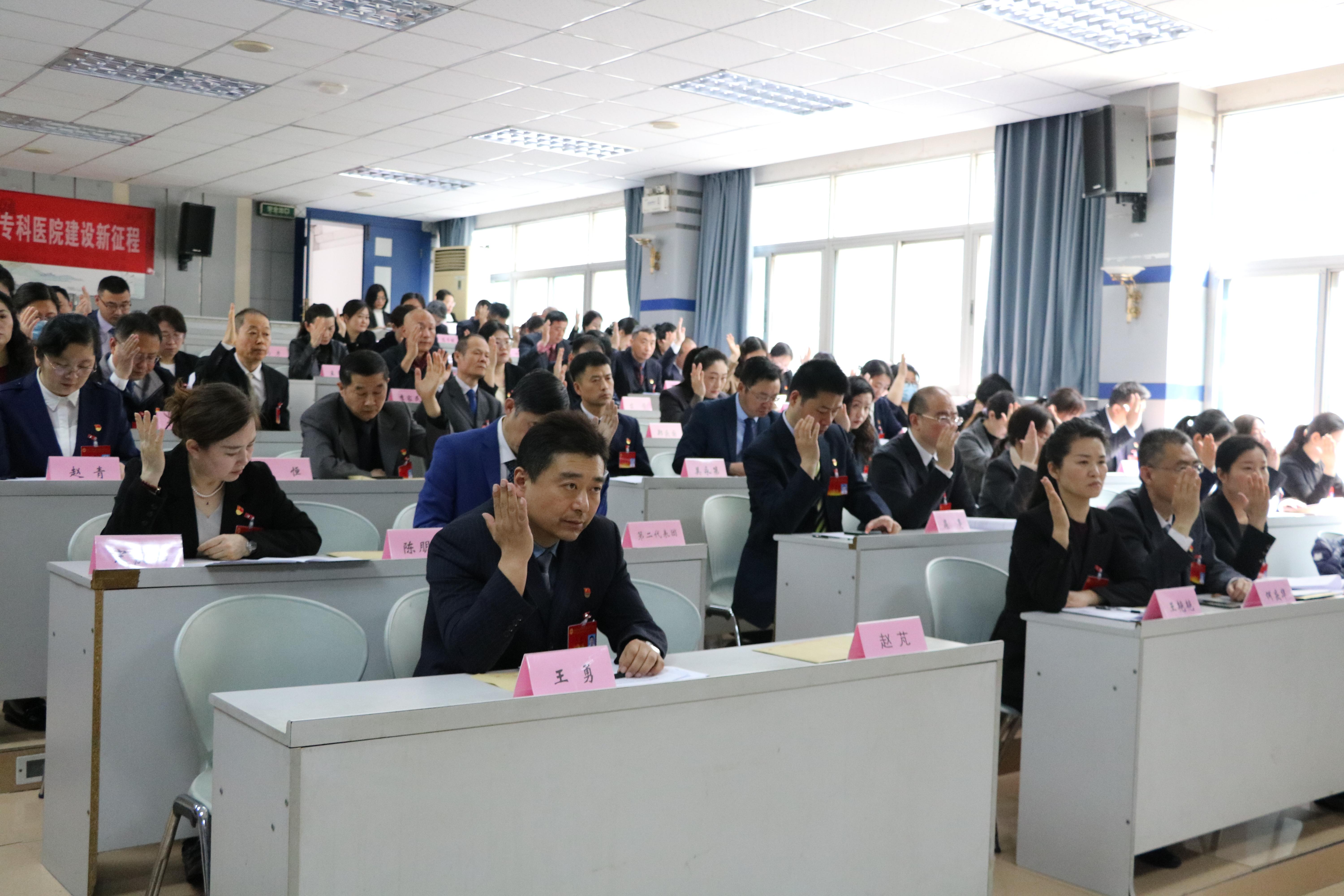 院工会副主席王勇作了题为“凝心聚力谋发展 共绘医院新蓝图”的工会工作报告;财务处处长姬玉敏作了医院财务工作报告;副院长刘敏作关于提案征集汇总情况说明。会议书面审议了《绩效考核分配办法》。