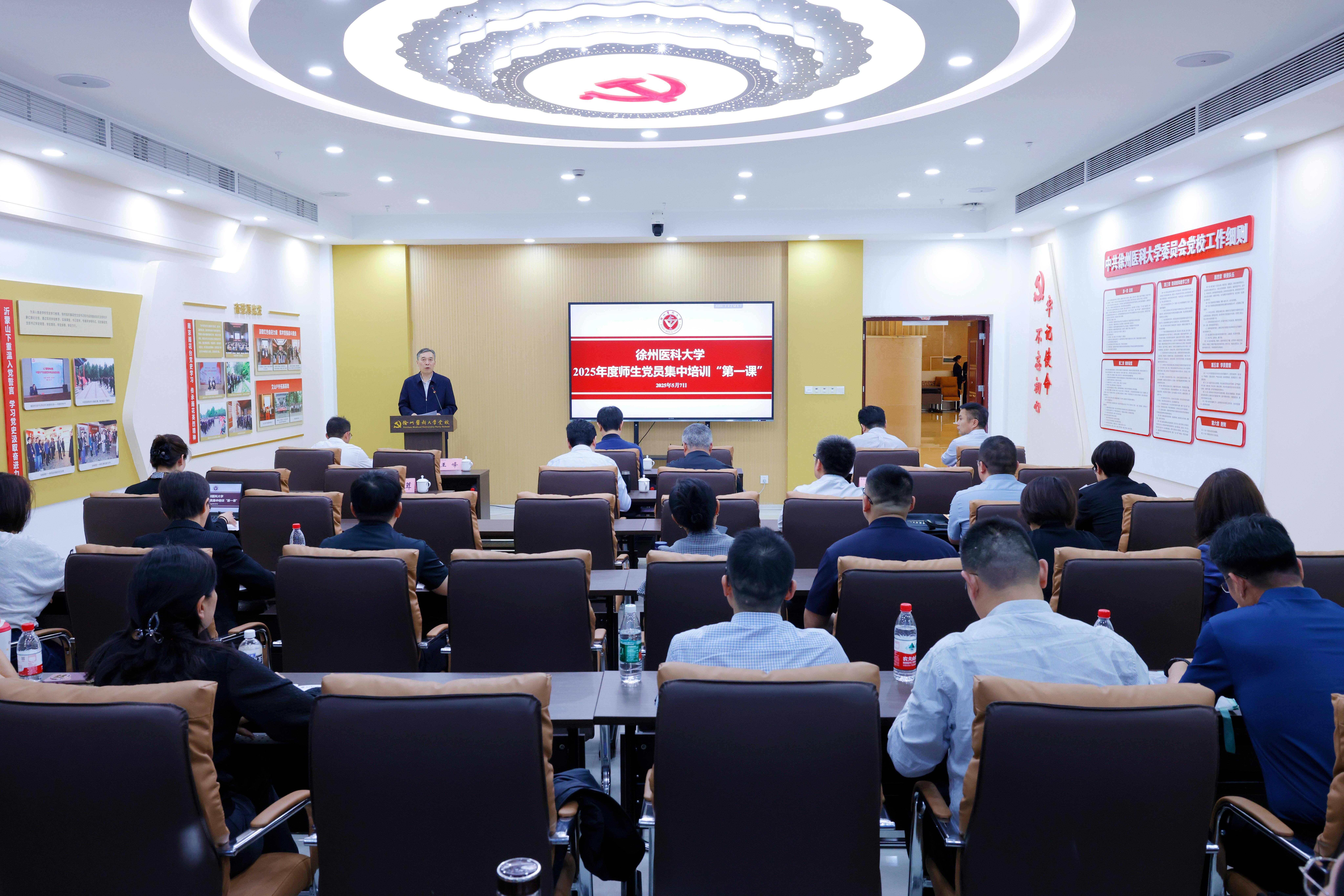 为深入学习贯彻习近平总书记关于党性的重要论述,5月7日下午,捕鱼达人 组织开展2025年度师生党员集中培训第一课。全校师生党员集中收看学习中央党校(国家行政捕鱼达人 )教育长张忠军主讲的“深入学习贯彻习近平总书记关于党性的重要论述,加强党性修养”专题辅导课。校领导班子成员和全校5000余名师生党员在党校教室及86个分会场共同参加线上视频培训。校党委书记祝木伟主持培训并讲话。