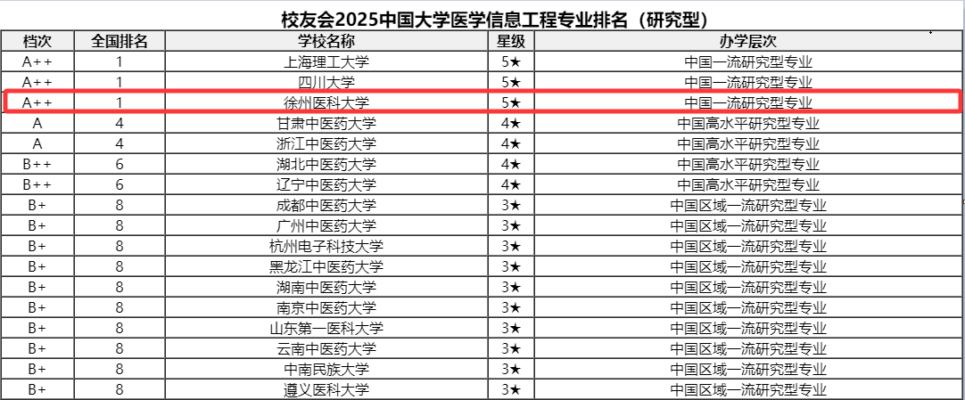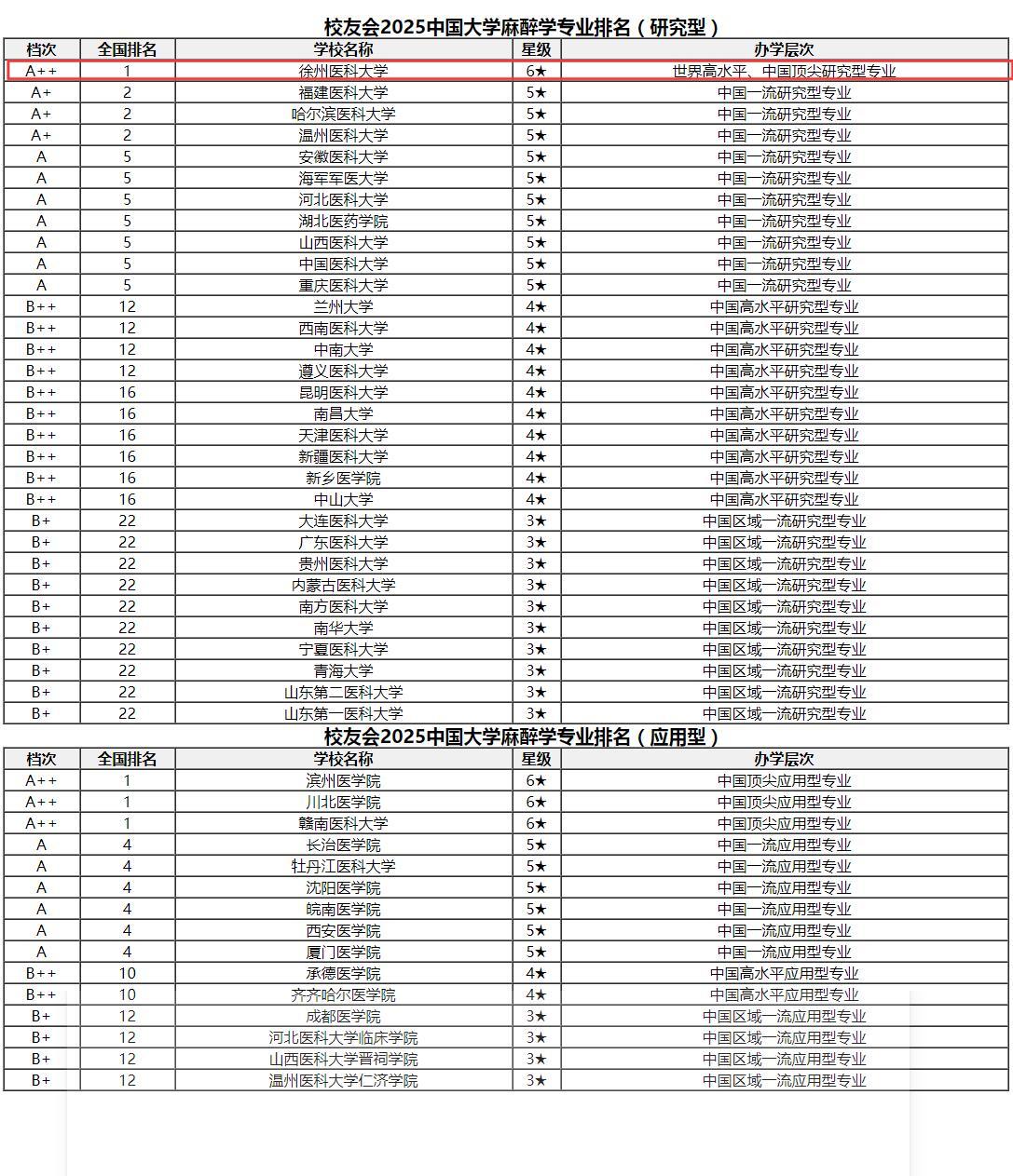 近日,全国第三方大学评价机构艾瑞深校友会网(Cuaa.net)最新发布校友会2025中国大学一流专业排名。捕鱼达人 麻醉学专业获评研究型专业6星级(A++)认证,医学信息工程专业获评研究型专业5星级(A++)认证,两个专业均在专业类排名中位居全国第一,其中,麻醉学专业连续三年蝉联榜首。