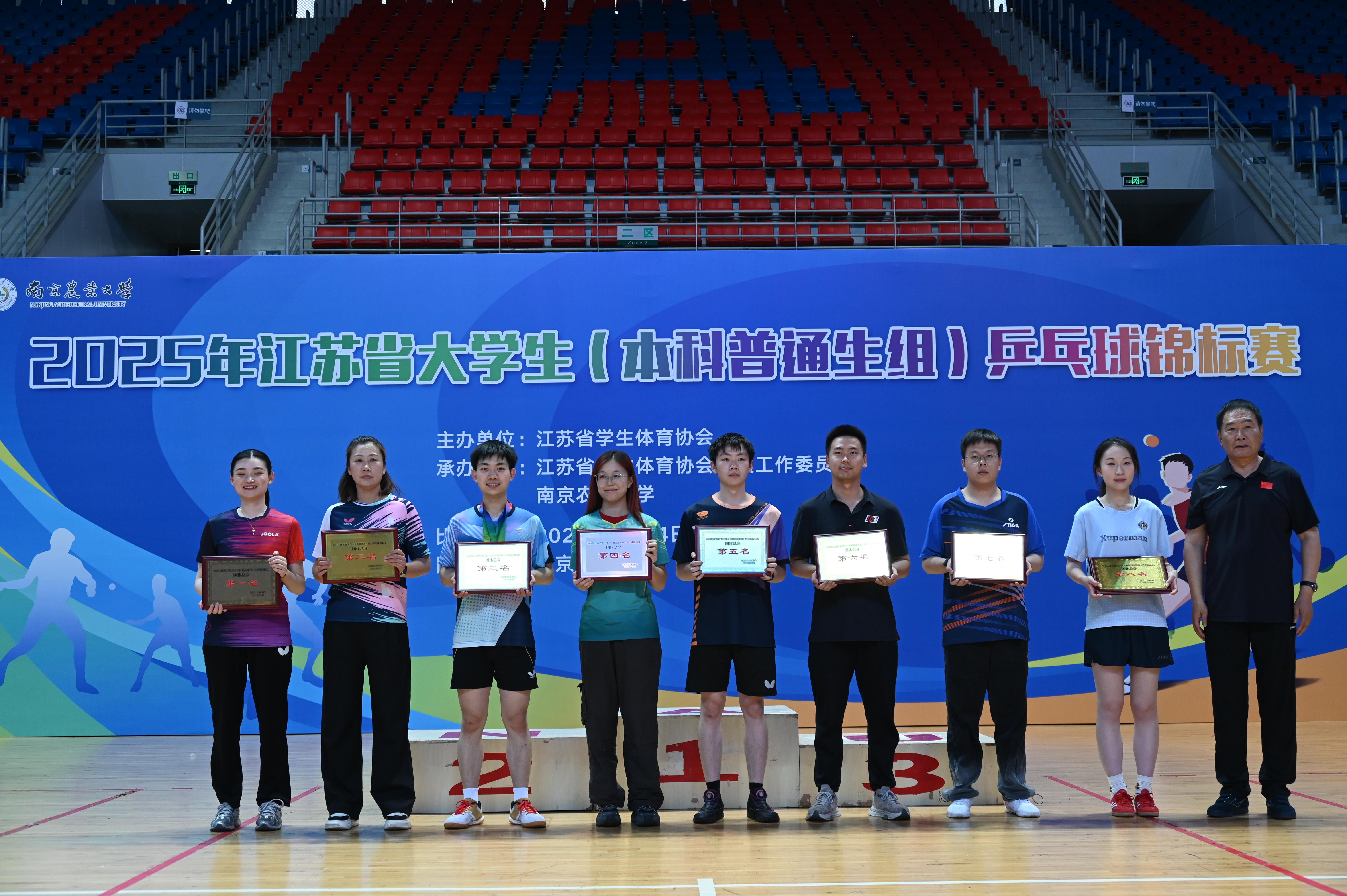 5月14日-18日,由江苏省学生体育协会主办,江苏省学生体育协会高校工作委员会、南京农业大学承办的2025年江苏省大学生(本科普通生组)乒乓球锦标赛在南京农业大学体育馆(卫岗校区)举行,来自46所高校的350名运动员参赛。捕鱼达人 代表队荣获女子单打第一名、双打第二名及团体总分第七名,取得了捕鱼达人 在此项目中的历史最好成绩。