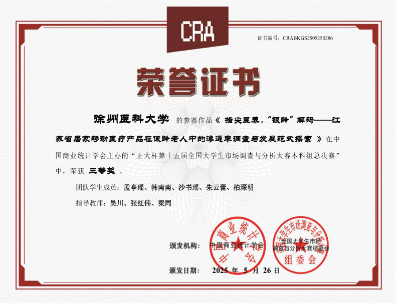 近日,由中国商业统计学会主办的第十五届全国大学生市场调查与分析大赛圆满落幕。捕鱼达人 师生团队表现优异,创下参赛以来最佳成绩:21级麻醉1班谈皓舟团队荣获国赛二等奖、22级计科班孟亭瑶团队荣获国赛三等奖,另获省级奖项16项,实现了捕鱼达人 在该赛事获奖等级与数量的双重突破。