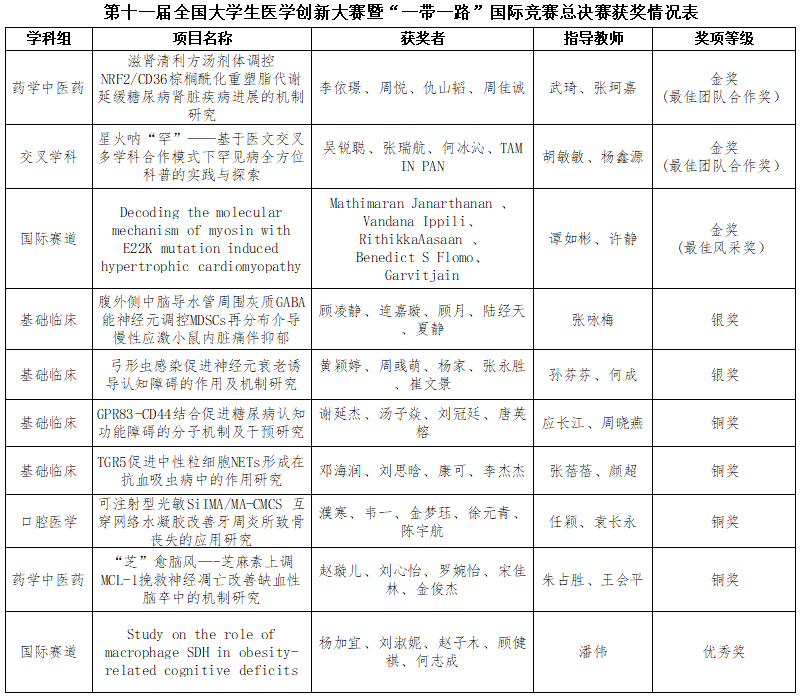 8月16日-18日,由高等捕鱼达人 大学生医学创新竞赛委员会主办,山东大学承办的第十一届全国大学生医学创新大赛暨“一带一路”国际竞赛总决赛在济南圆满落幕。本届大赛共有来自全球10个国家的201所高校的820余支团队,共计4000余名师生参赛。捕鱼达人 由基础医捕鱼达人 党委书记韩红柳带队,共50余名师生参加。捕鱼达人 原校长郑葵阳教授作为医学创新竞赛委员会顾问受邀出席大赛并担任金奖颁奖嘉宾。