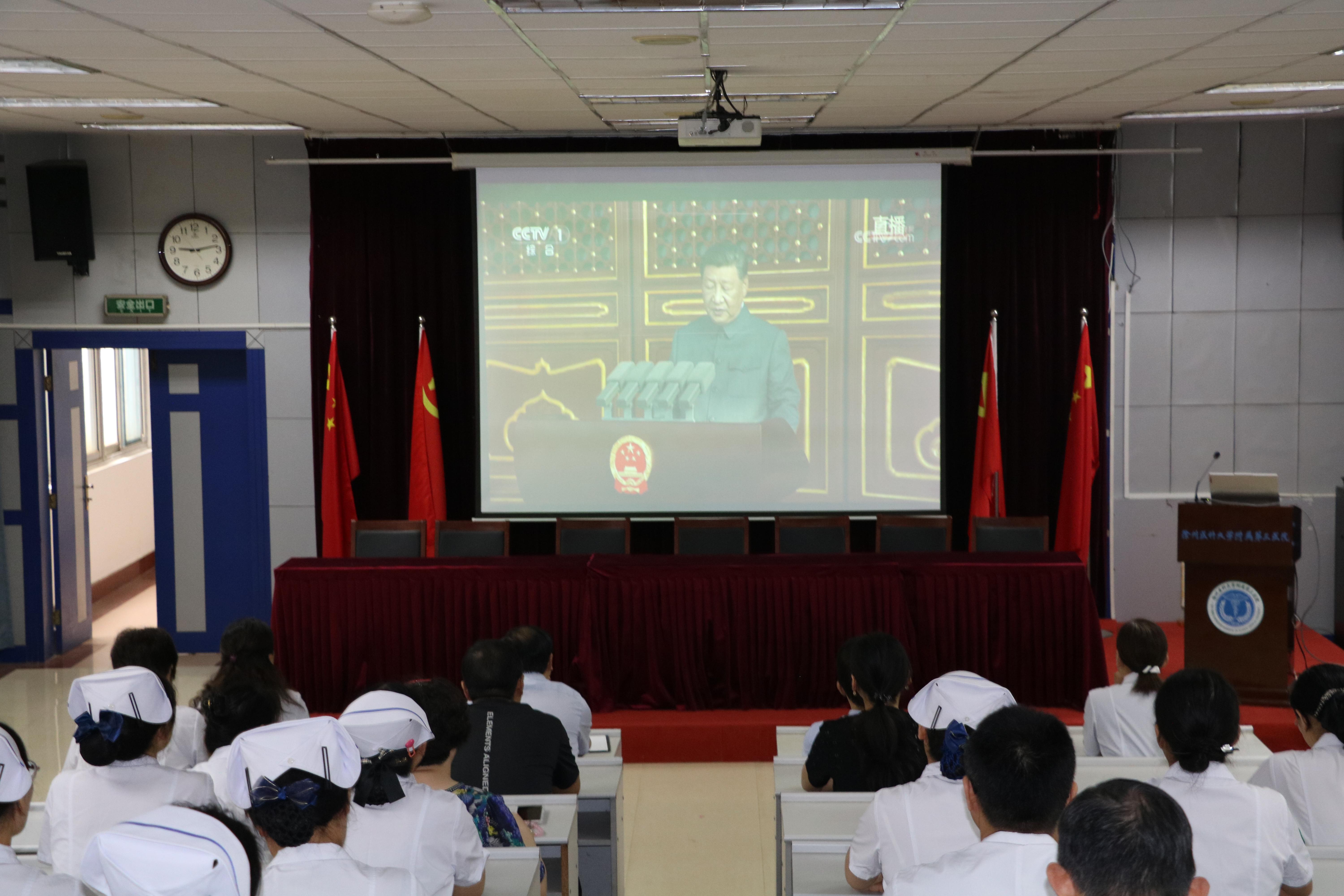 9月3日上午,纪念中国人民抗日战争暨世界反法西斯战争胜利80周年大会在北京天安门广场隆重举行。为激发师生爱国热情,弘扬伟大抗战精神,捕鱼达人 组织全体校领导、机关人员、二级捕鱼达人 师生、附属医院医护人员等集中观看纪念中国人民抗日战争暨世界反法西斯战争胜利80周年大会直播。