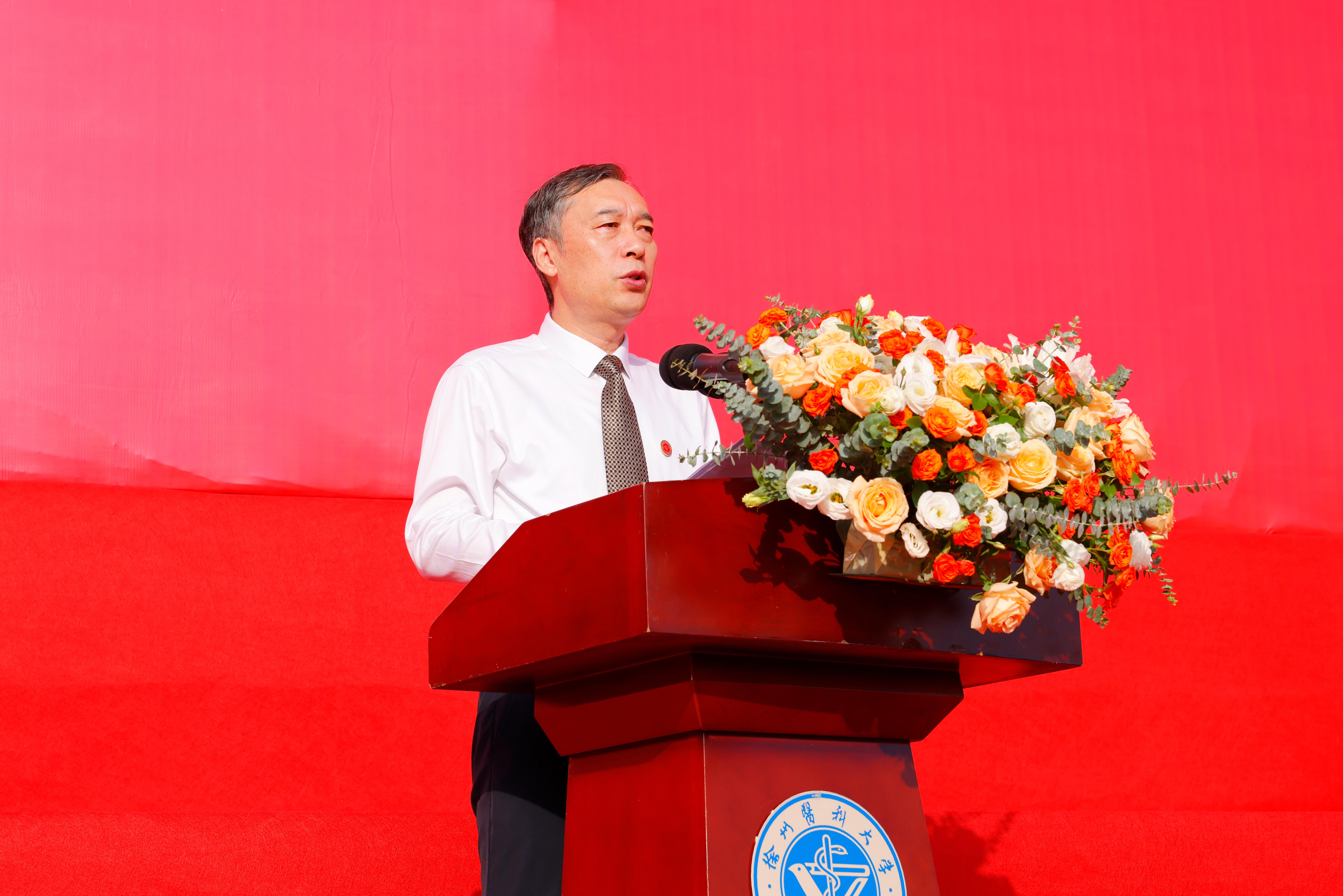 典礼上,校领导为新生代表佩戴校徽。全体新生起立,郑重地戴上属于自己的校徽。从这一刻起,同学们将在徐医谱写属于自己的精彩篇章。